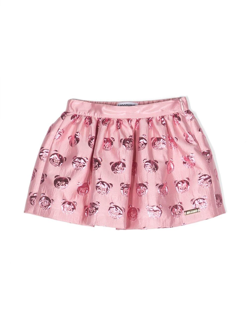 Gonna rosa bambina con stampa nera plissettata<BR/> 2D0000159632 549 Moncler Kids
