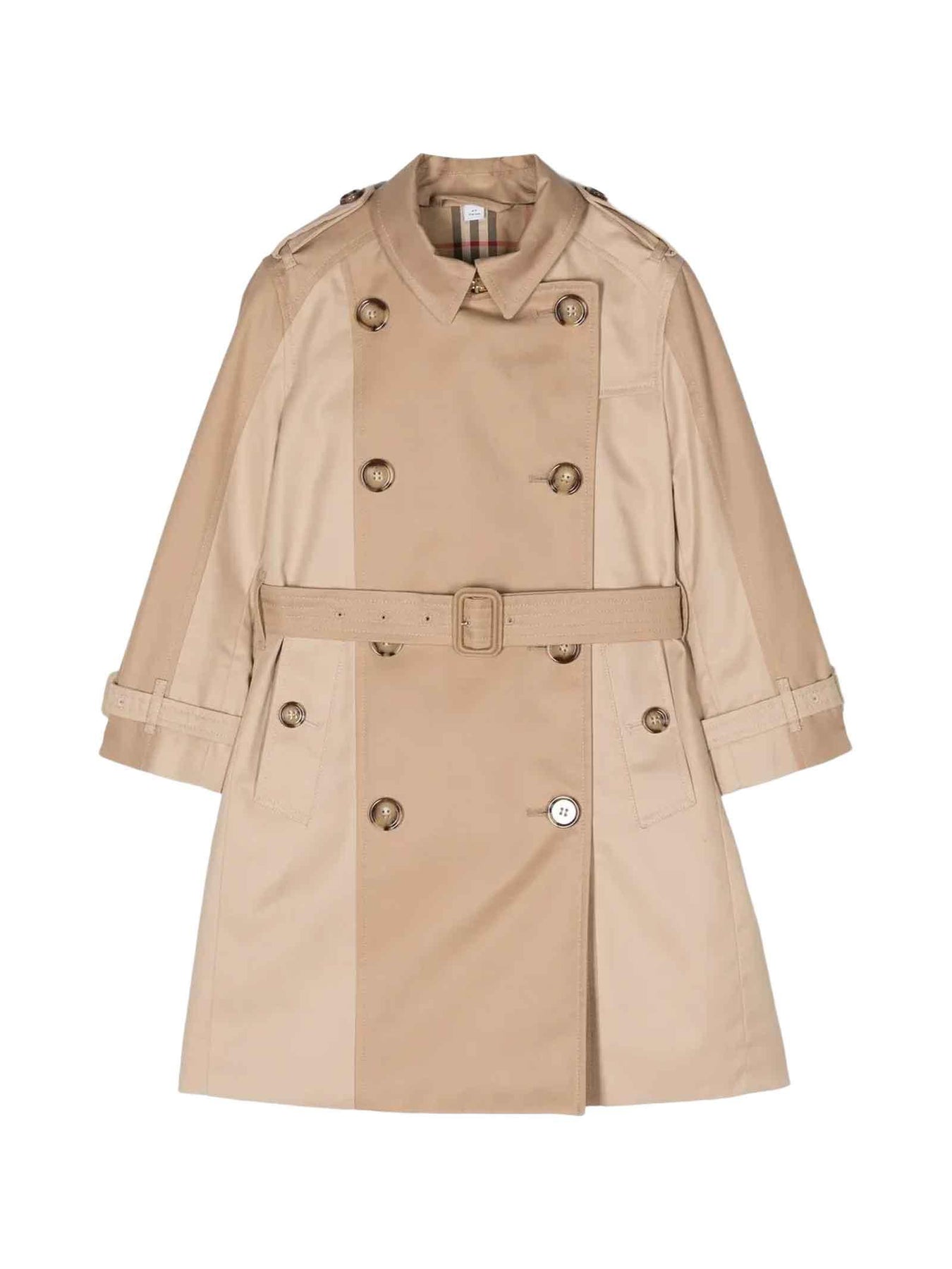 Trench beige bambina Burberry Kids. Design a inserti. Cotone 100%