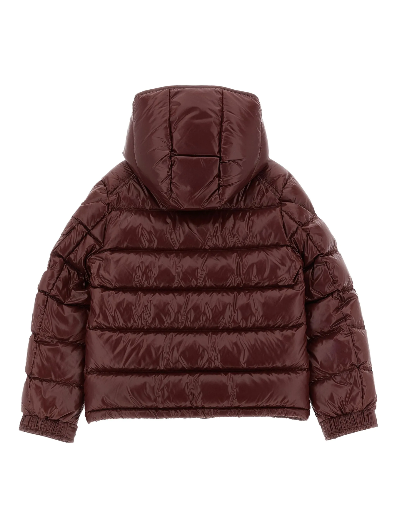 Giubbino Maya MONCLER KIDS.Bordeaux,imbottitura in piuma,collo alto,chiusura frontale con zip,tasche con zip,cappuccio rimovibile.