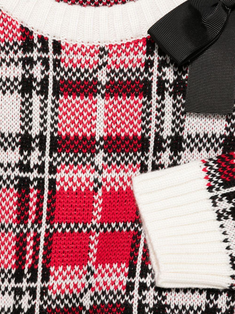Maglia MONNALISA KIDS.Rossa,girocollo,profili bianchi,fantasia tartan,dettaglio fiocco.