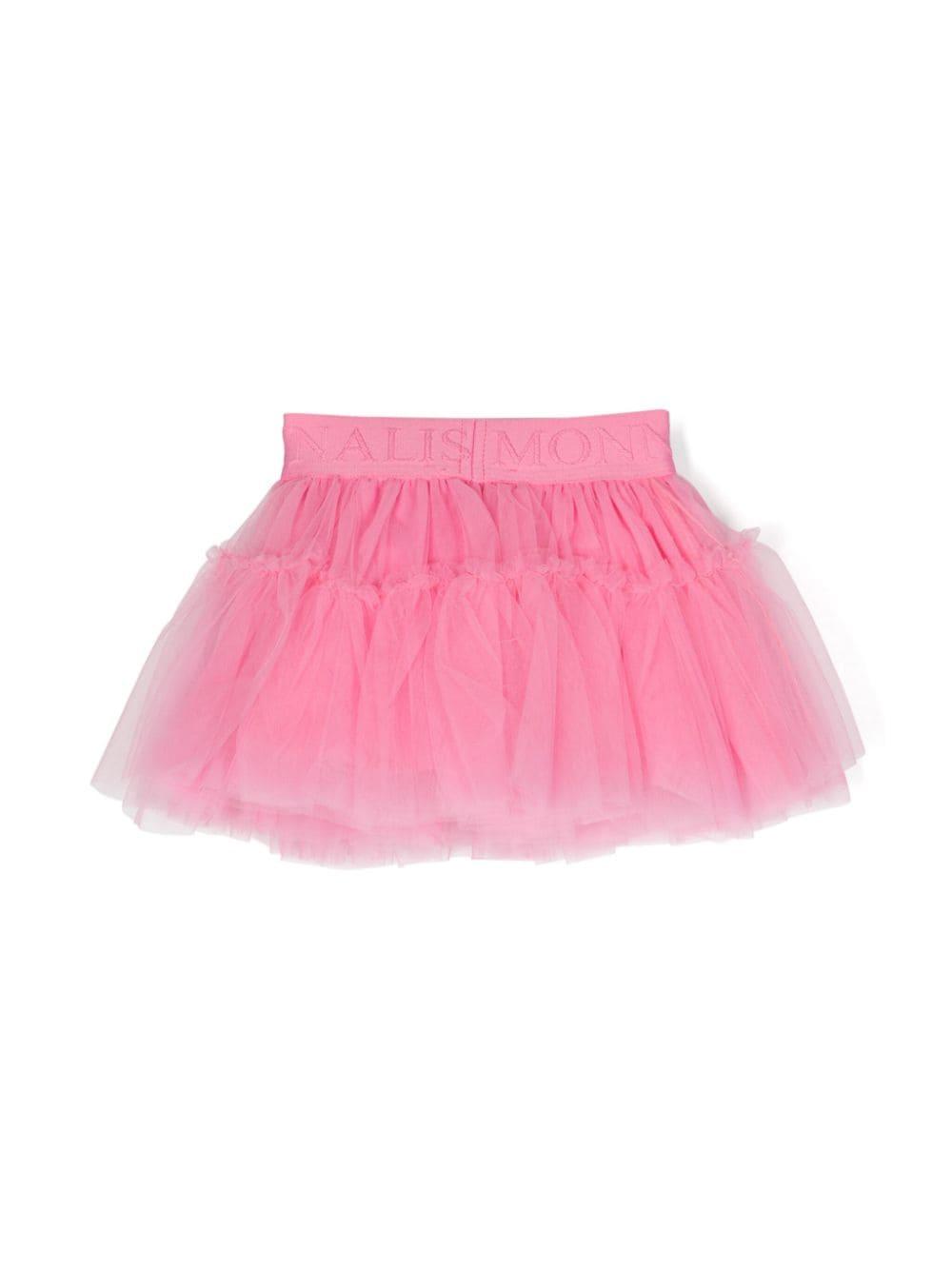 Gonna rosa neonata Monnalisa kids. Design in tulle, vita elasticizzata con logo, gonna voluminosa, fodera in cotone e design pull on. Cotone 100%