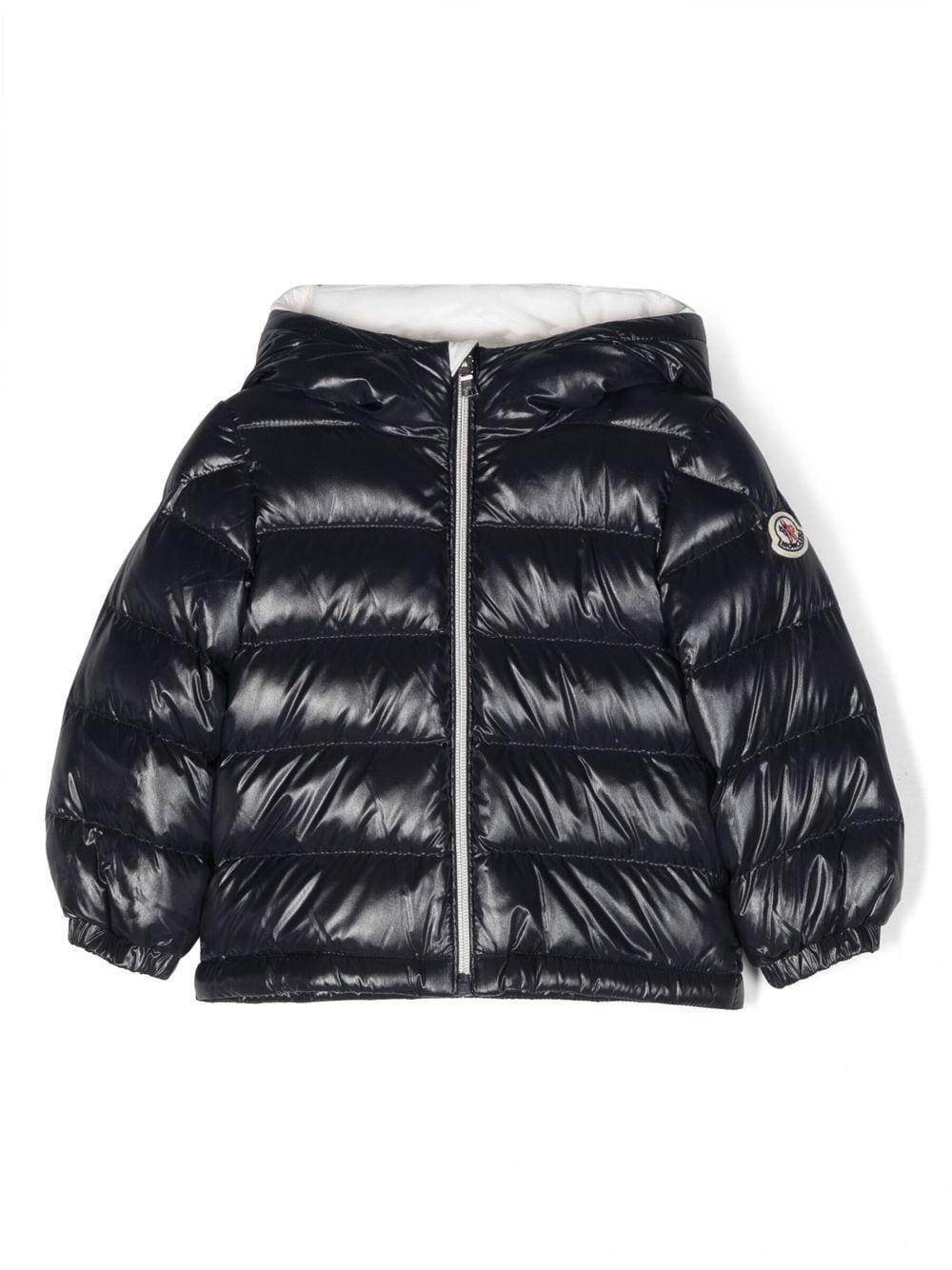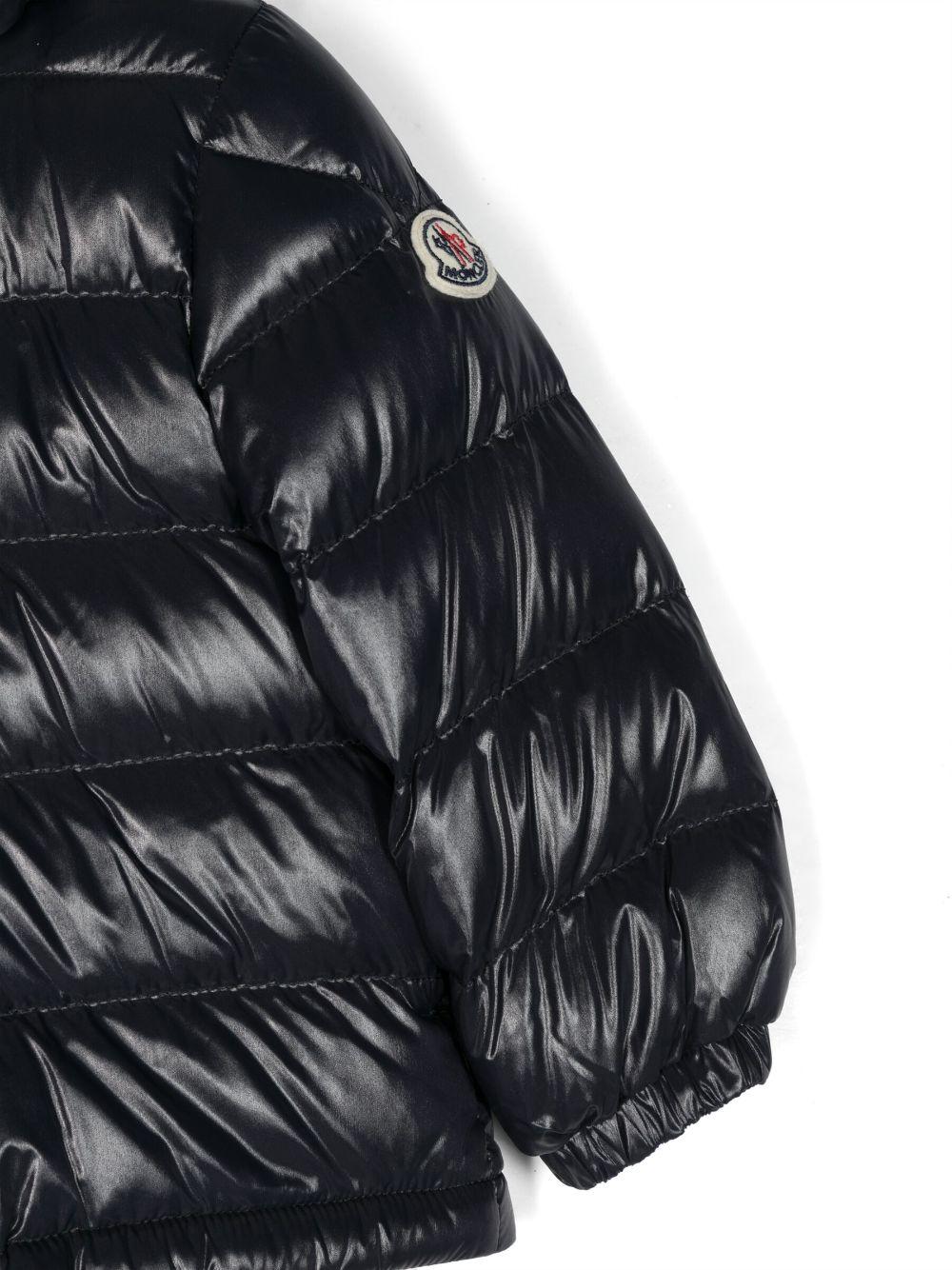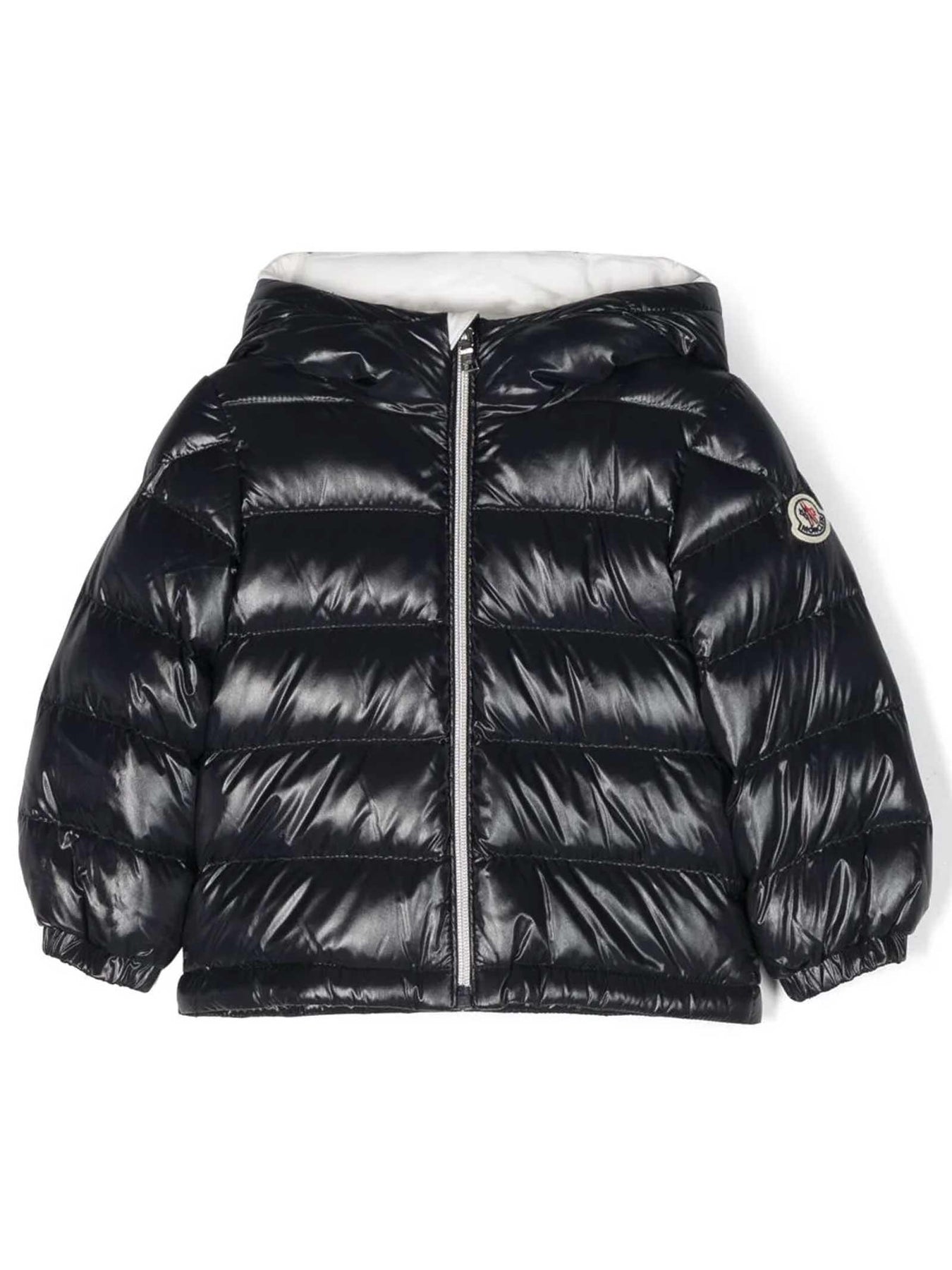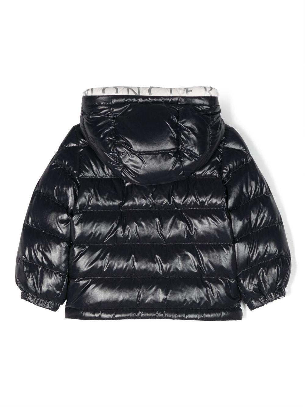 Giubbotto blu neonata con logo Moncler kids, design imbottito, cappuccio, chiusura frontale con zip, maniche lunghe, polsini elasticizzati e orlo dritto.ComposizioneFodera: Cotone 100%, Piuma D'oca 100%Esterno: Poliammide 100%