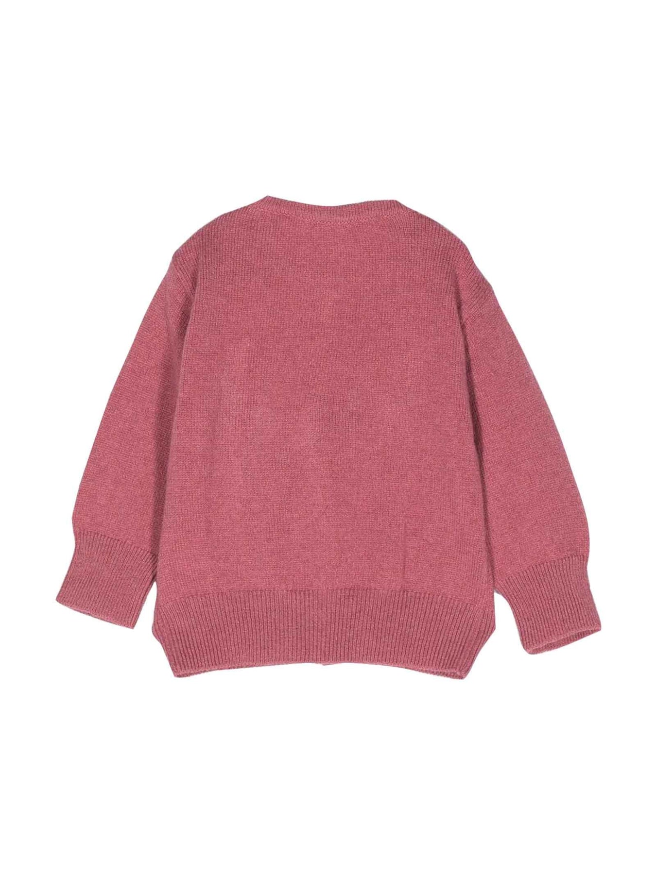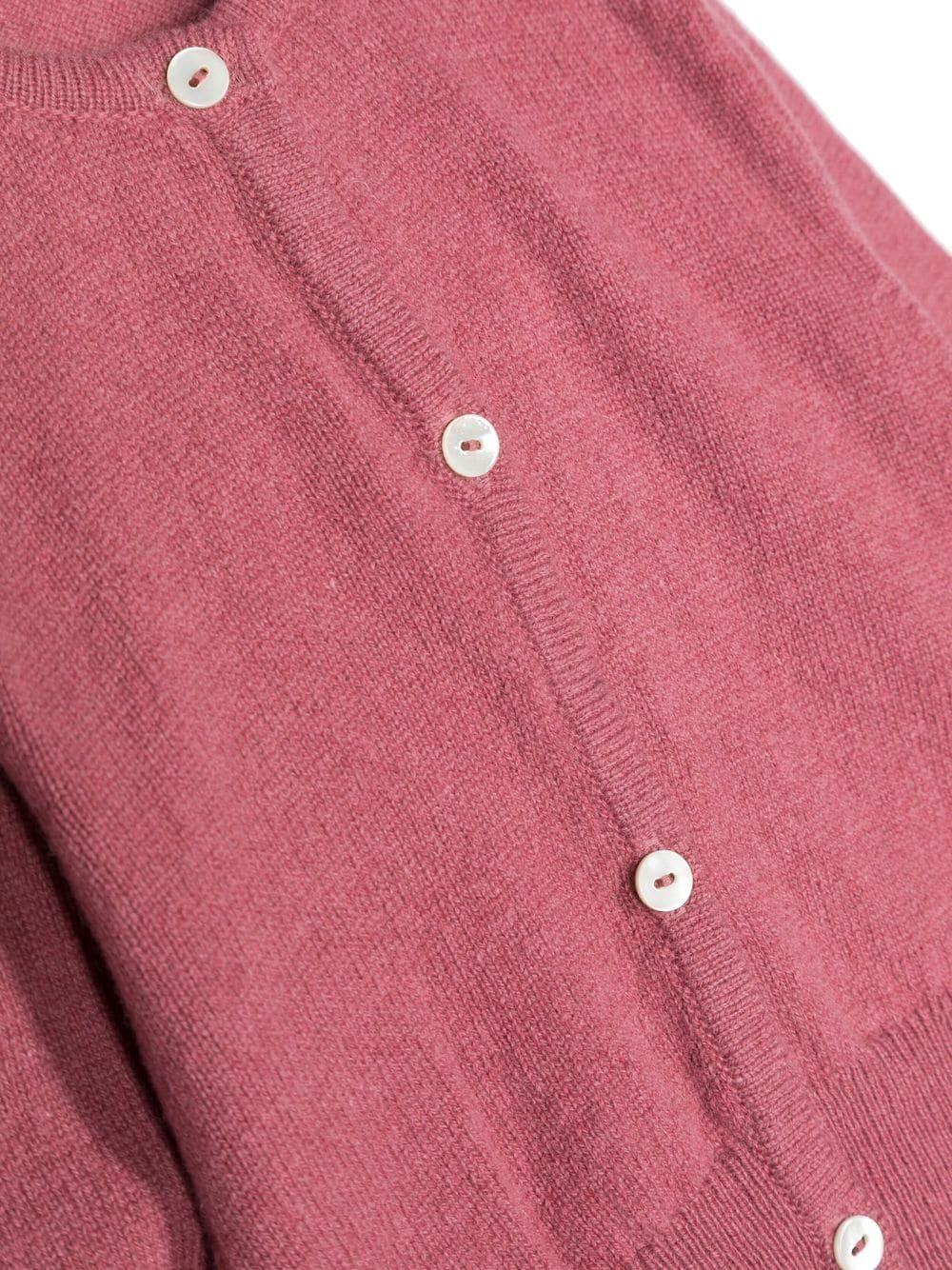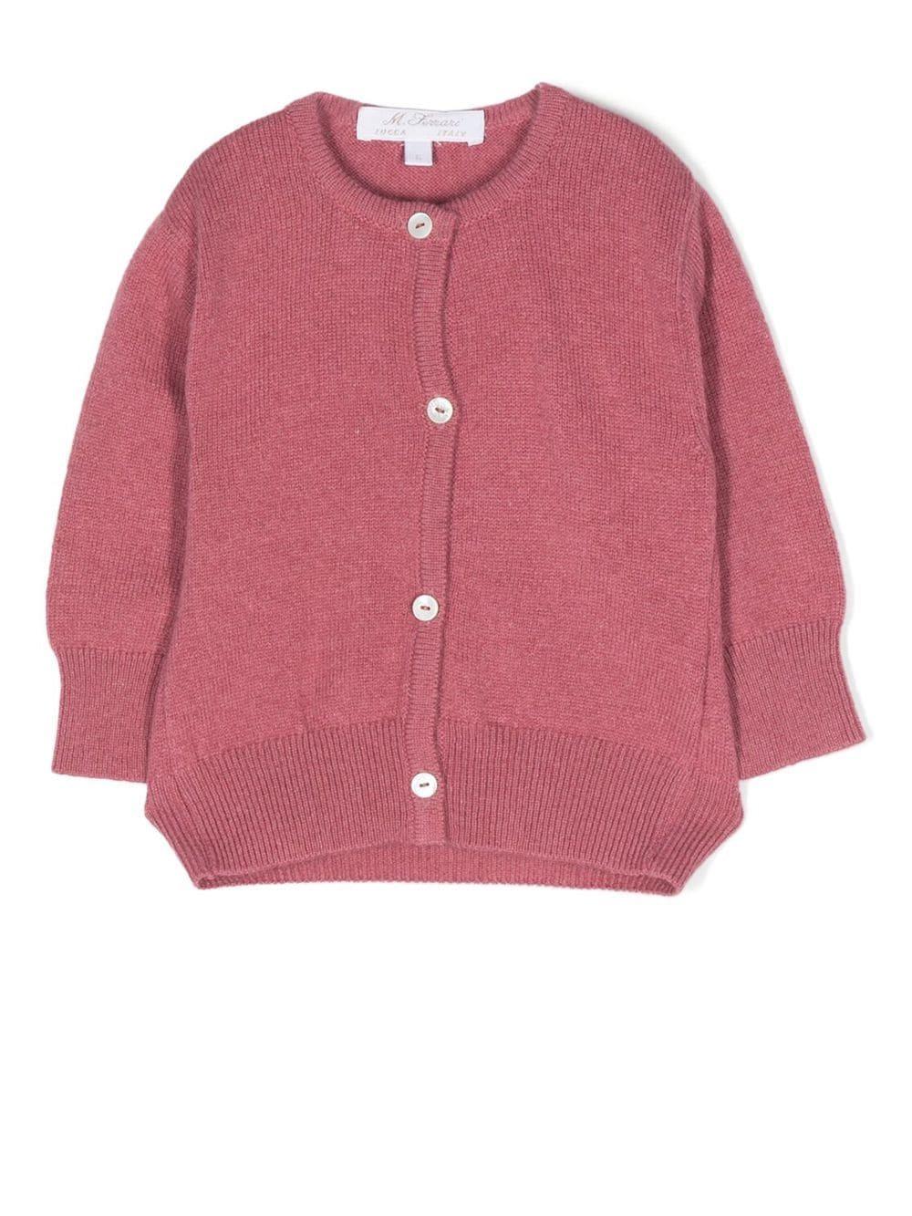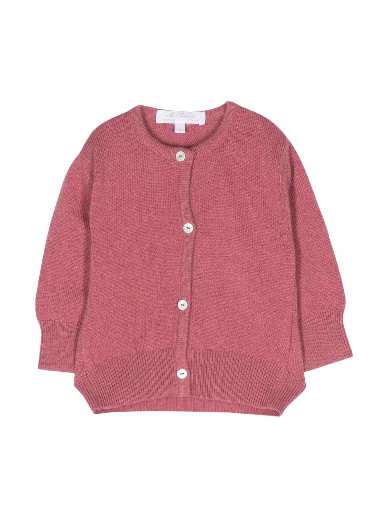 Cardigan rosa neonato unisex Ferrari Mariella. Maglia fine, chiusura frontale con bottoni, maniche lunghe e scollo rotondo. Cashmere 70%, Lana Merino 30%