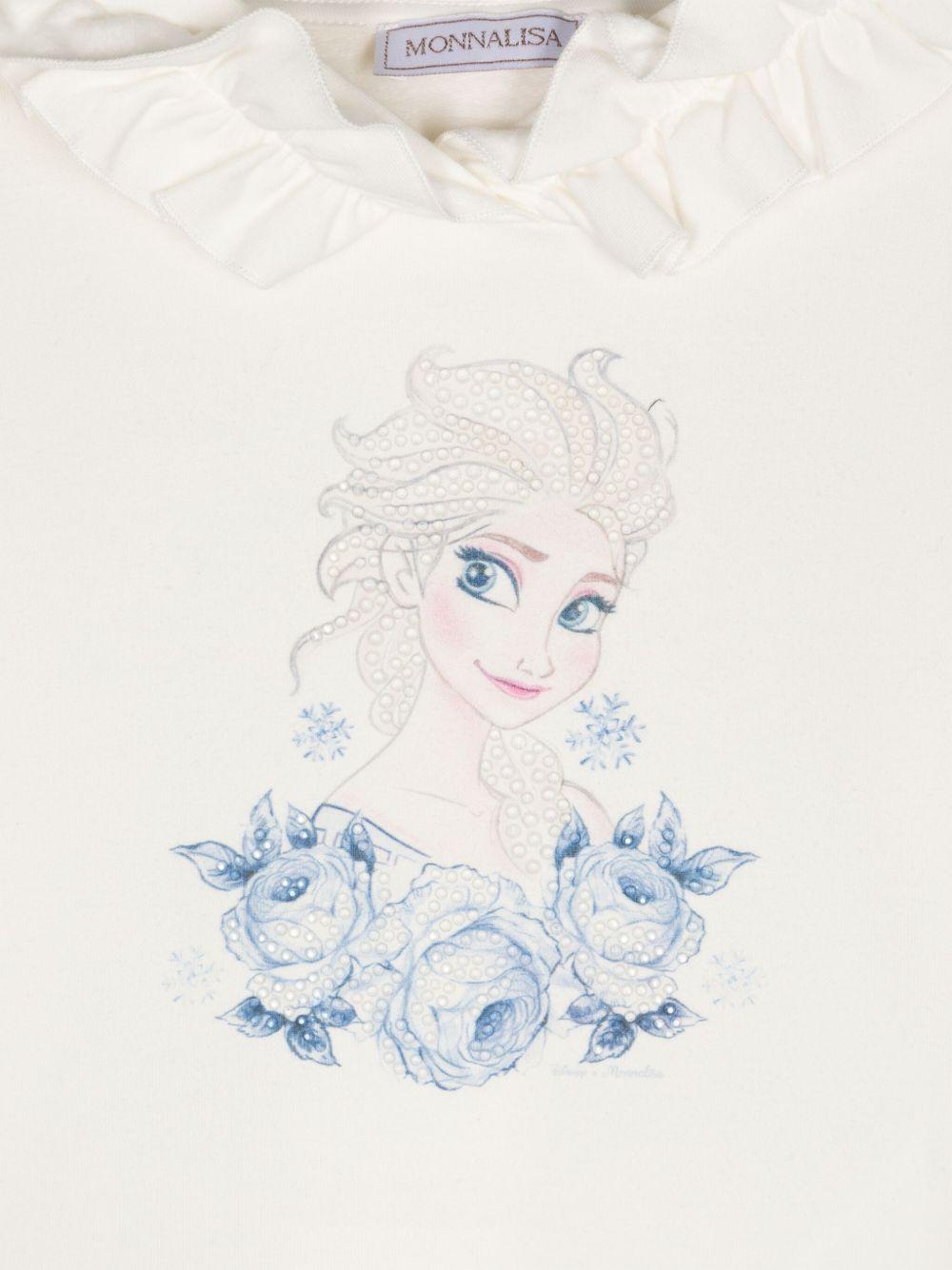Felpa MONNALISA KIDS.Bianca,cappuccio,rifinitura con ruches,stampa "Elsa".