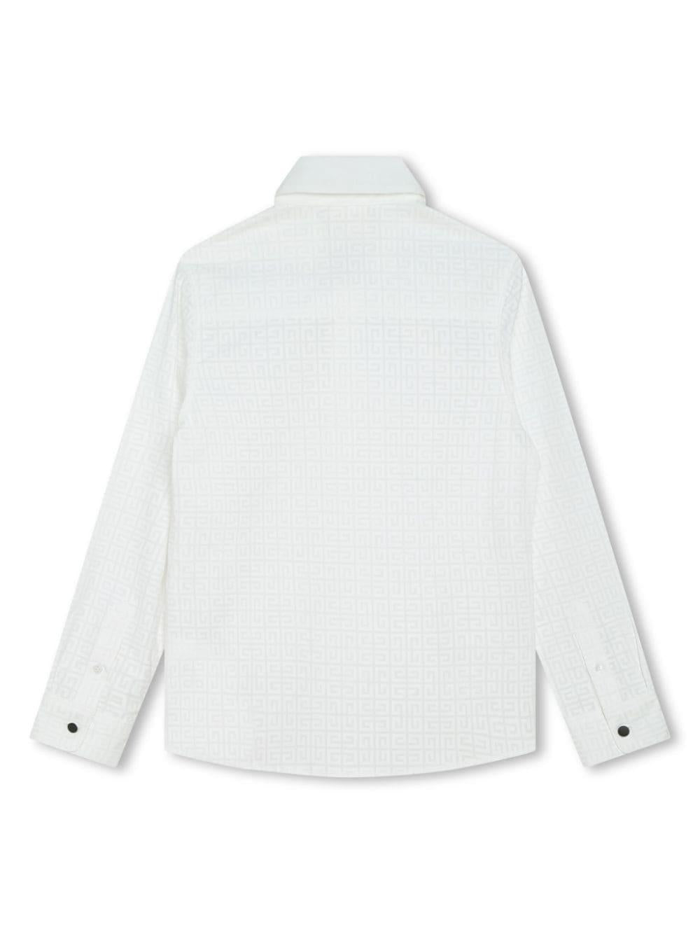 Camicia bambina bianca con motivo 4G Givenchy Kids.Bianco ottico,cotone,trama popeline,stampa con logo all-over,caratteristico motivo 4Gplacca con logo,colletto classico,chiusura frontale con bottonimaniche lunghe,polsini con bottone,orlo curvoComposizione:cotone 100%
