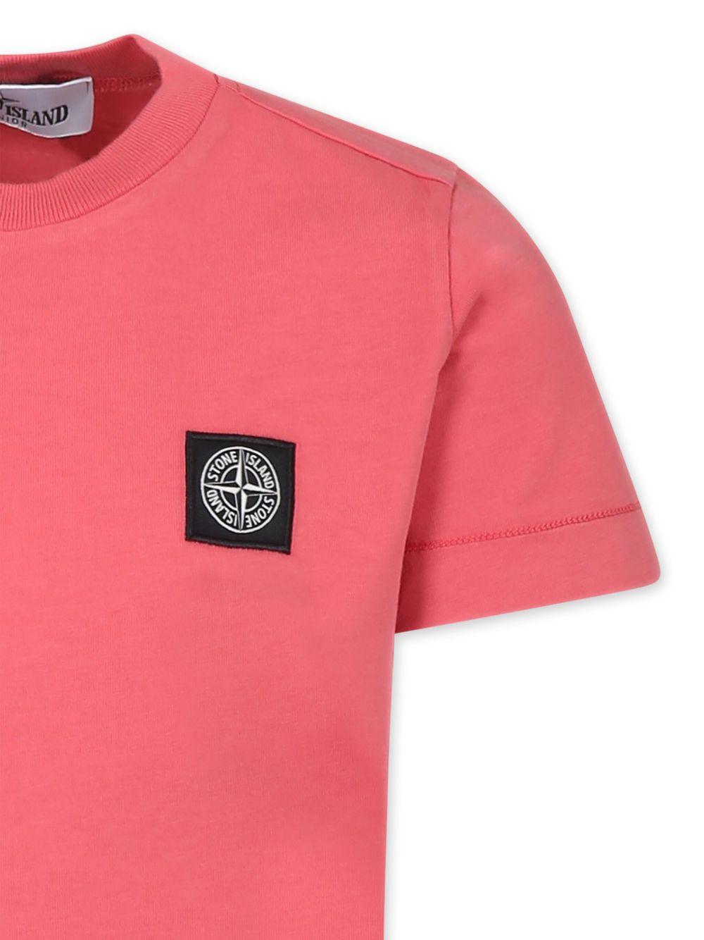 T-shirt STONE ISLAND JUNIOR.Geranio,manica corta,girocollo,patch con logo Compass sul petto.100%cotone
