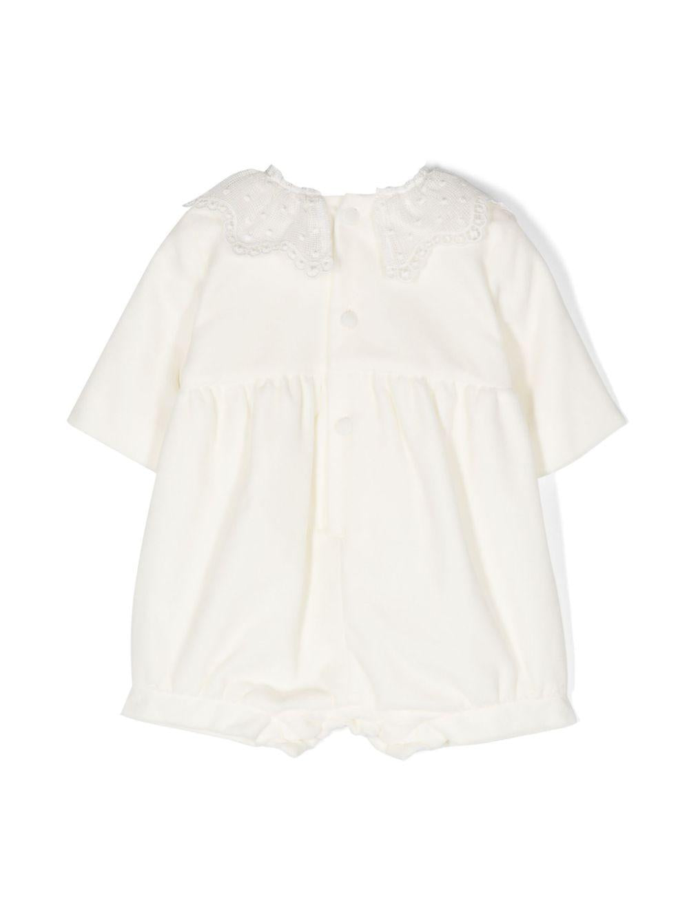 Tutina PICCOLOCA'FOSCARI JESVRVM.Bianco, colletto bianco in pizzo,maniche lunghe.Fodera: acetato 60%, viscosa 40%Esterno: cotone 100%