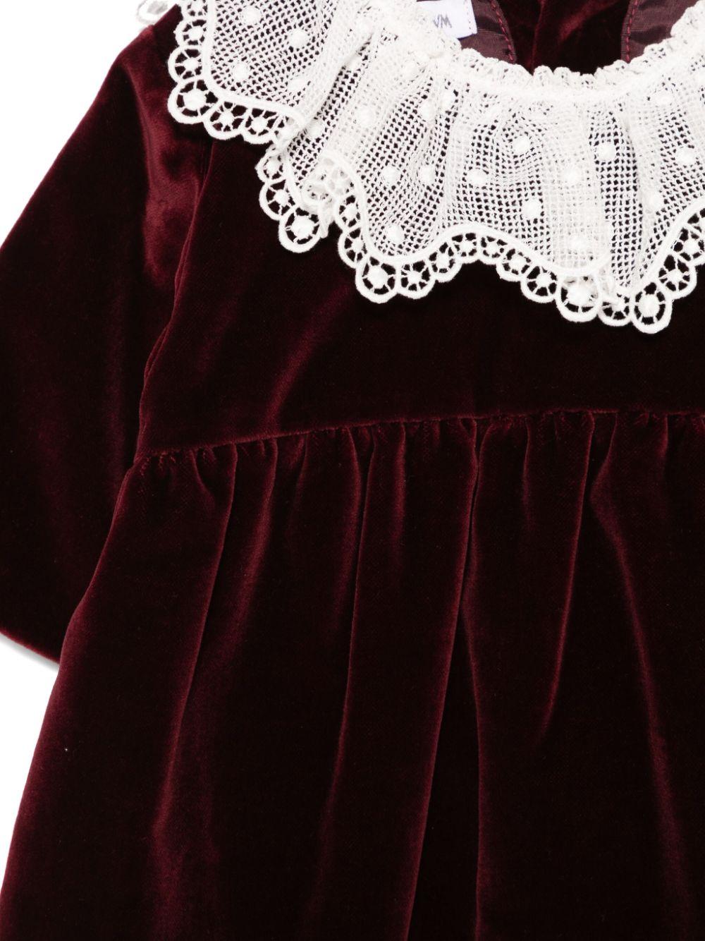Tutina PICCOLOCA'FOSCARI JESVRVM.Bordeaux, colletto bianco in pizzo,maniche lunghe.Fodera: acetato 60%, viscosa 40%Esterno: cotone 100%