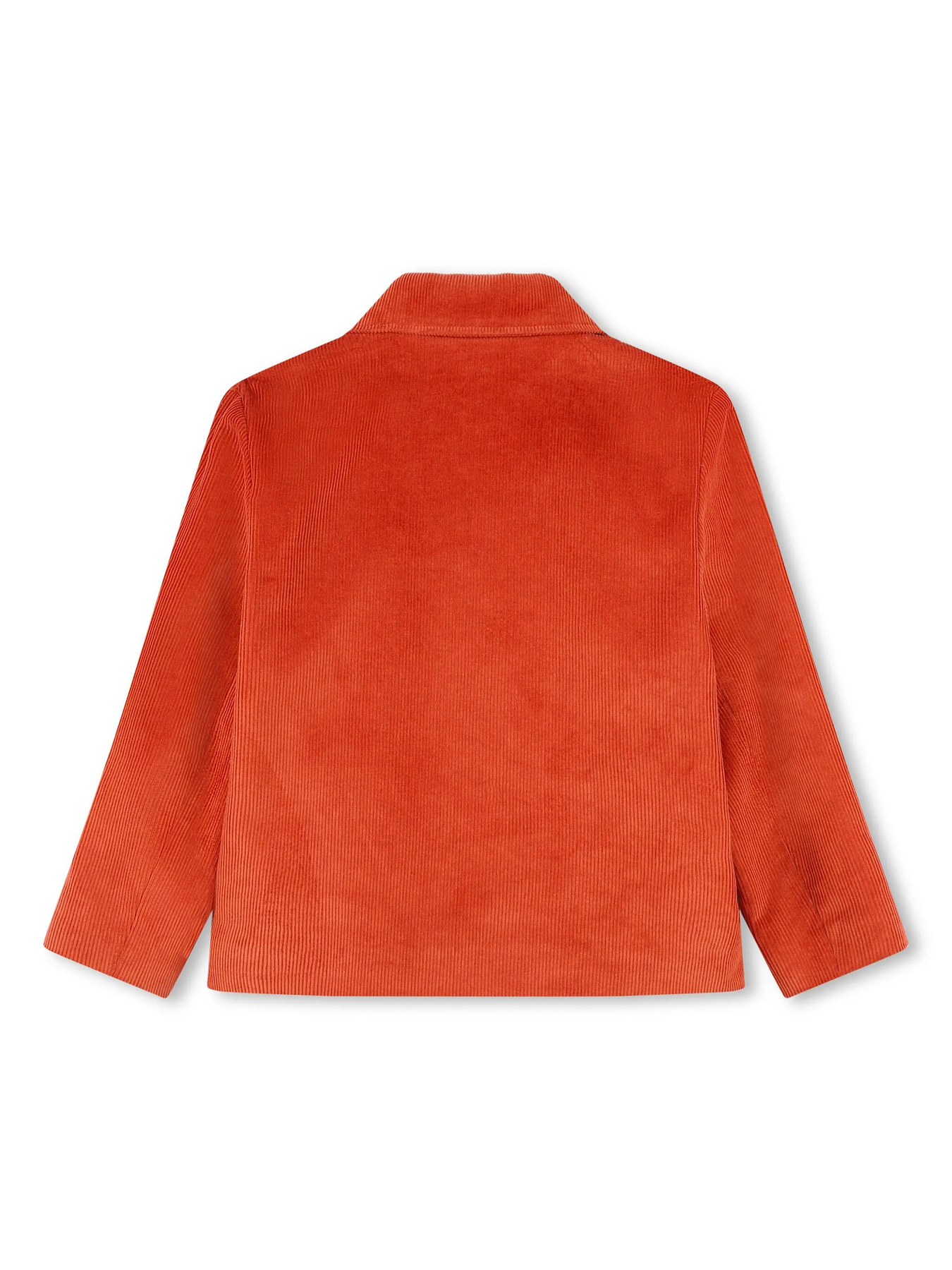 Giacca KENZO KIDS.Arancio,chiusura frontale con abbottonatura,revers a punta,tasca applicata sul petto,applicazione con logo sul petto,tasche laterali applicate.