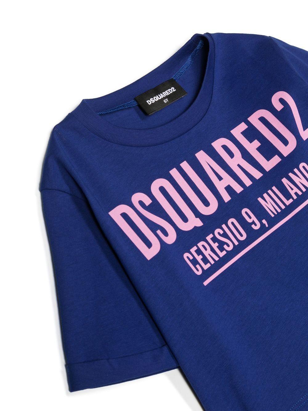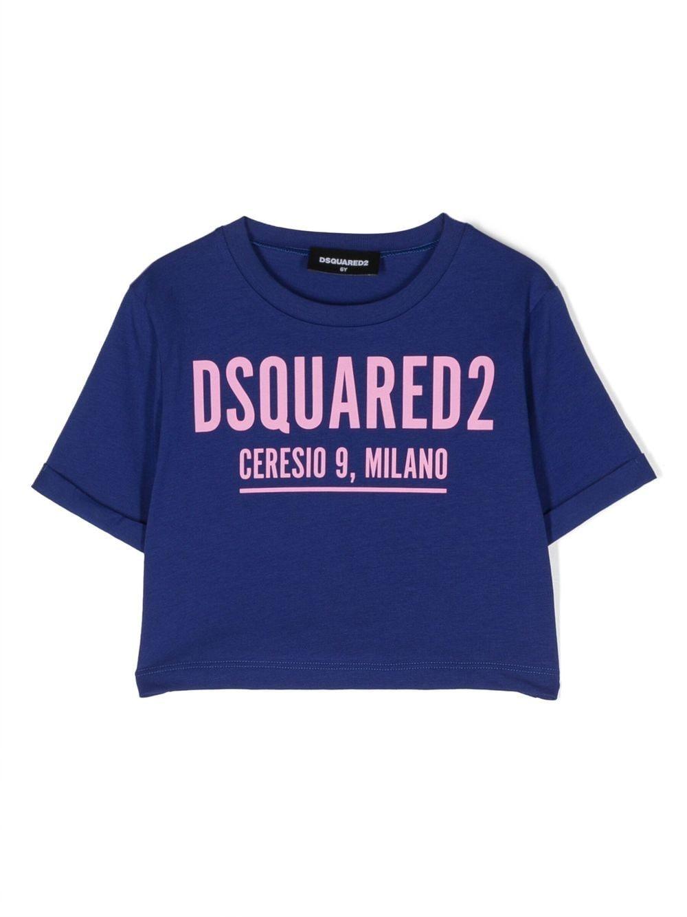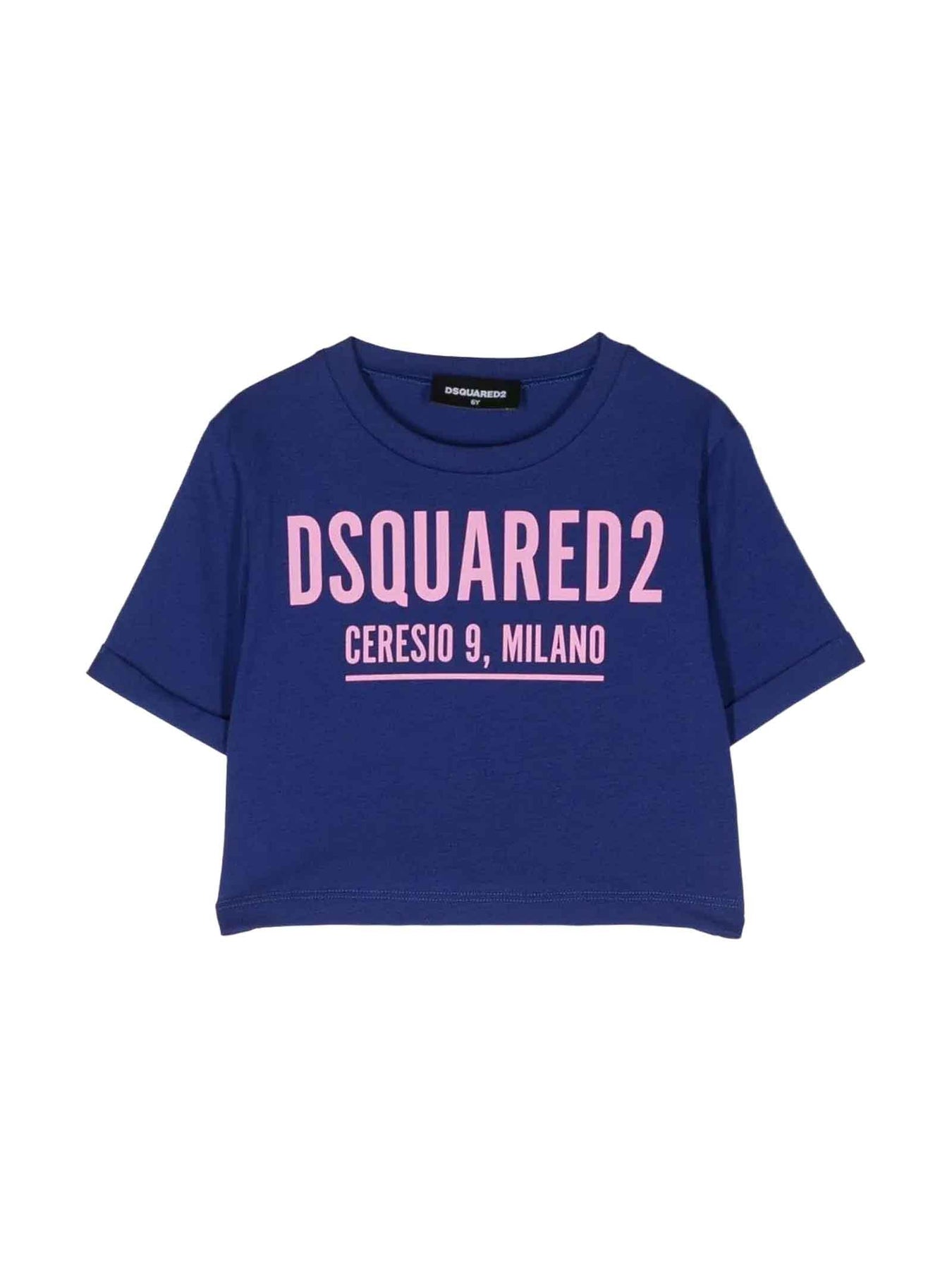 T-shirt viola bambina Dsquared2 Kids. Stampa con logo sul davanti, scollo rotondo, maniche corte e orlo dritto. Cotone 100%