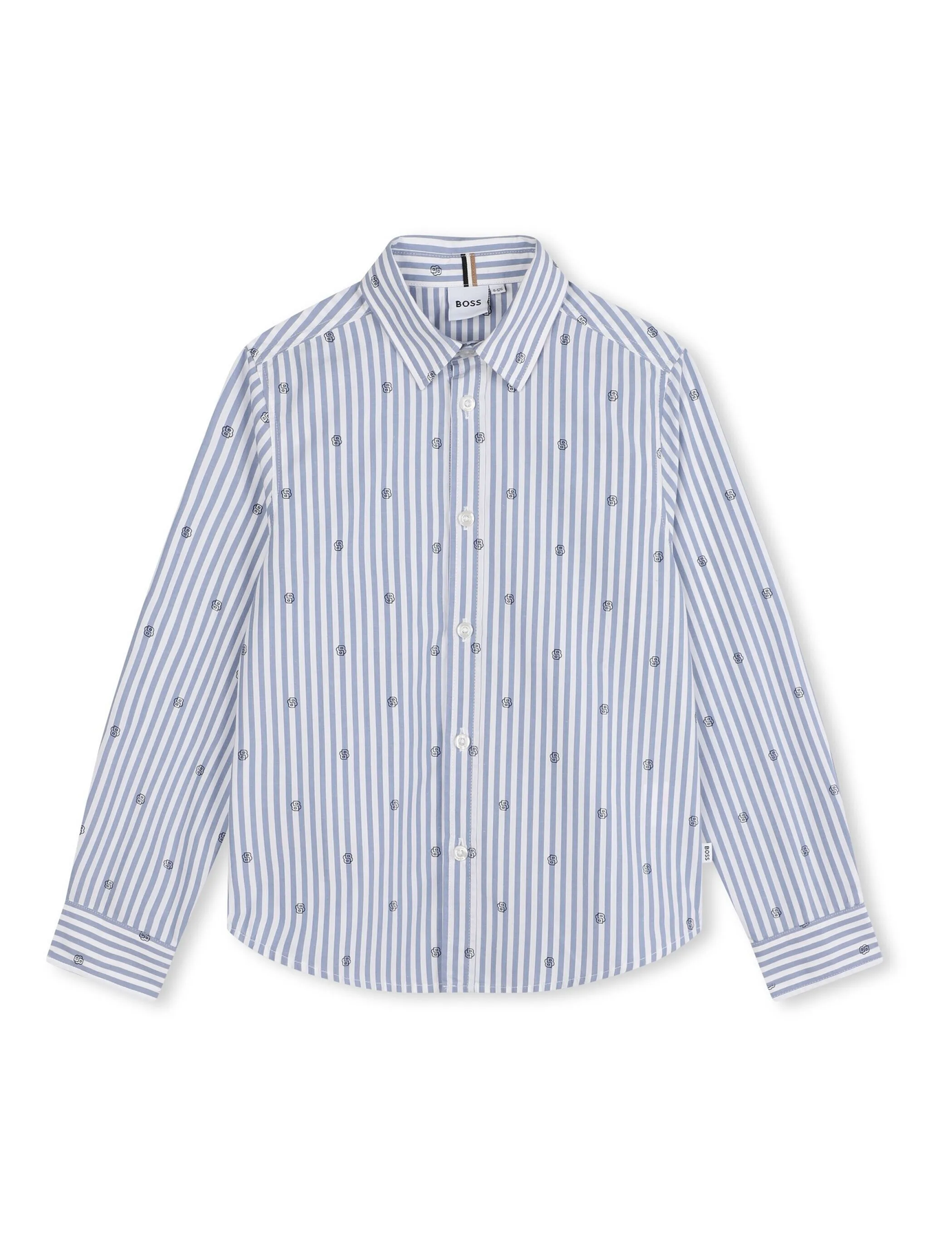 Camicia BOSS KIDS.Celeste/bianco,motivo a righe verticali,mini targhetta con logo,colletto classico,chiusura frontale con abbottonatura,maniche lunghe,orli con abbottonatura.