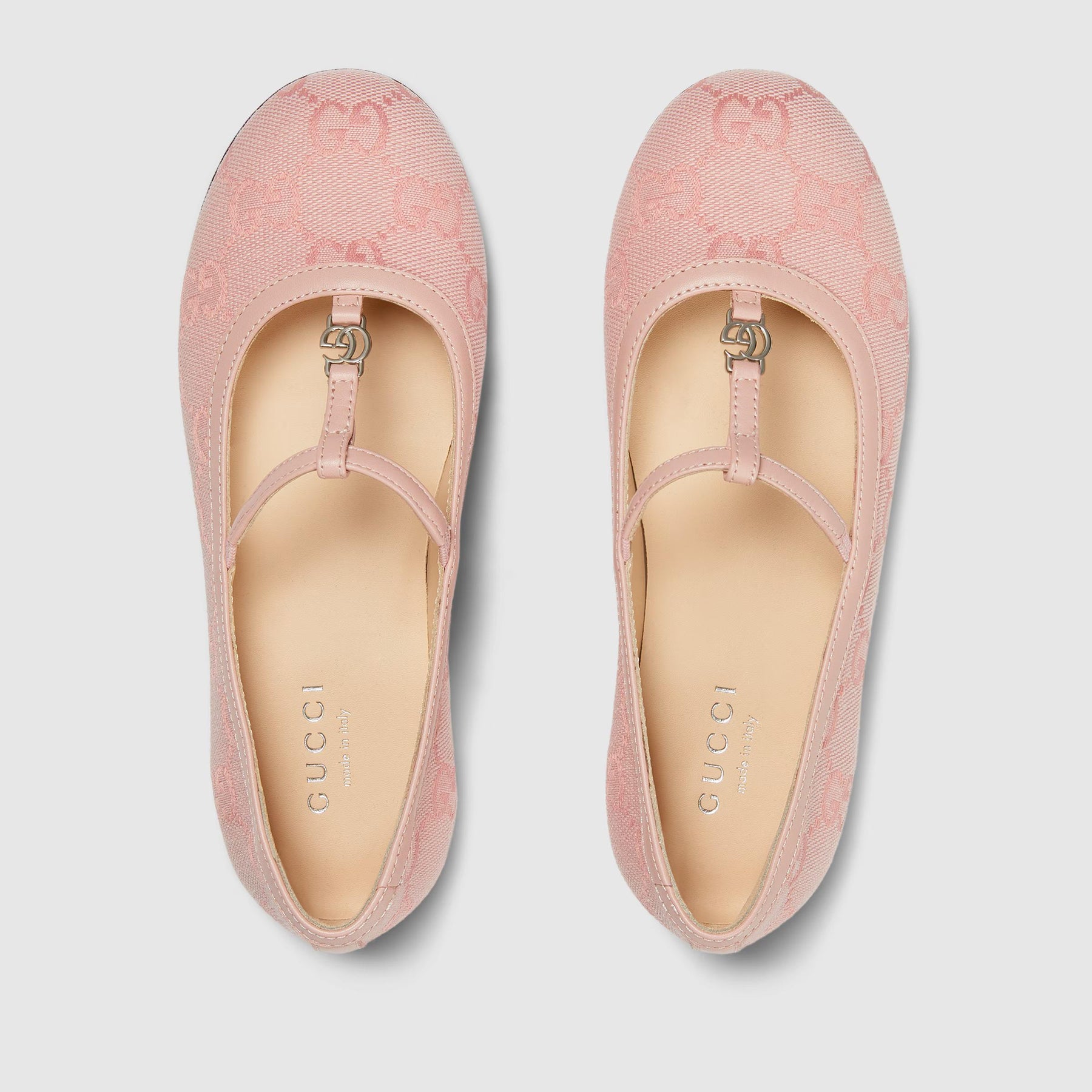 Ballerina con Doppia G GUCCI KIDS.Tessuto GG rosa,finiture in pelle rosa,finiture color argento.