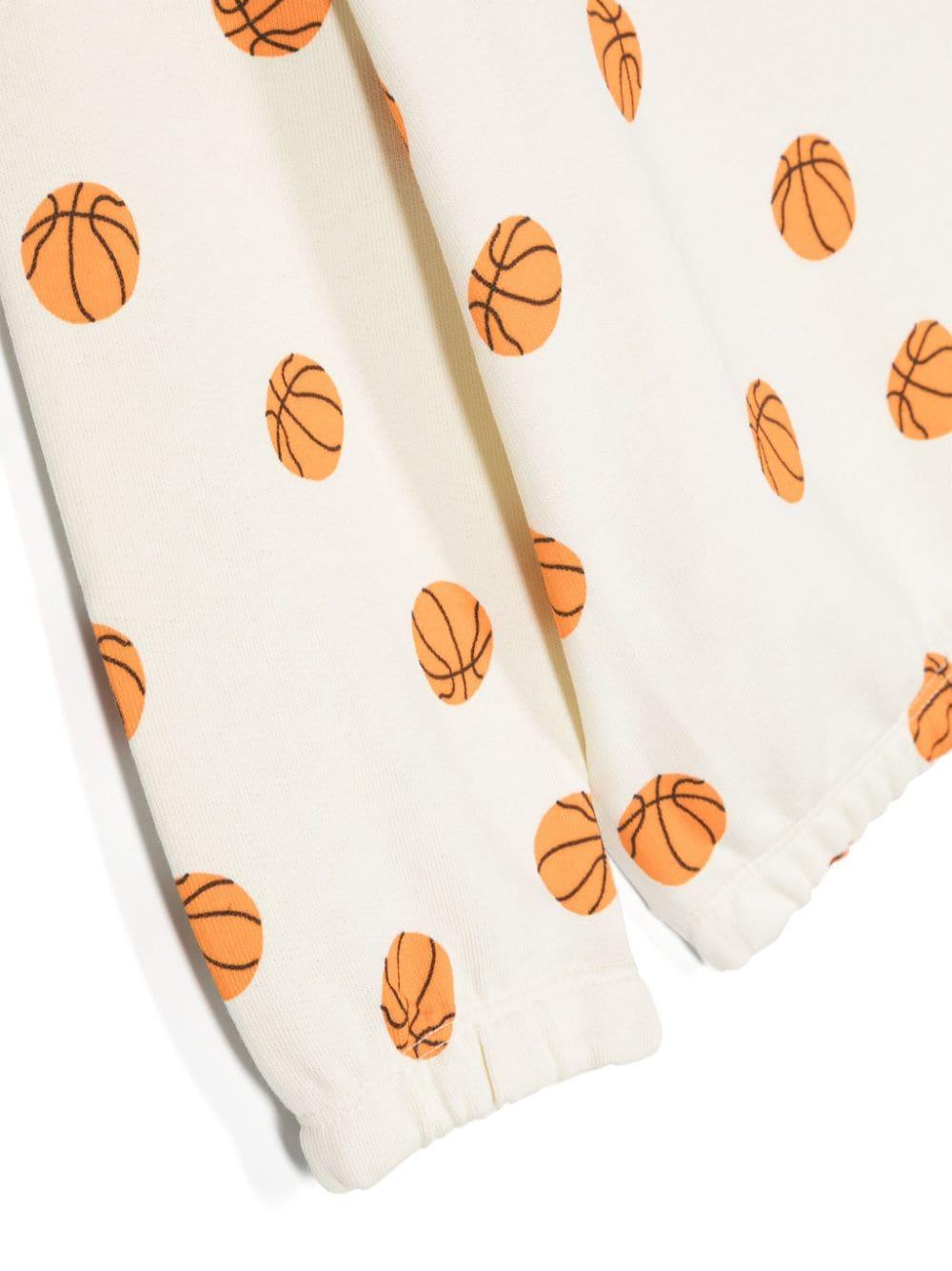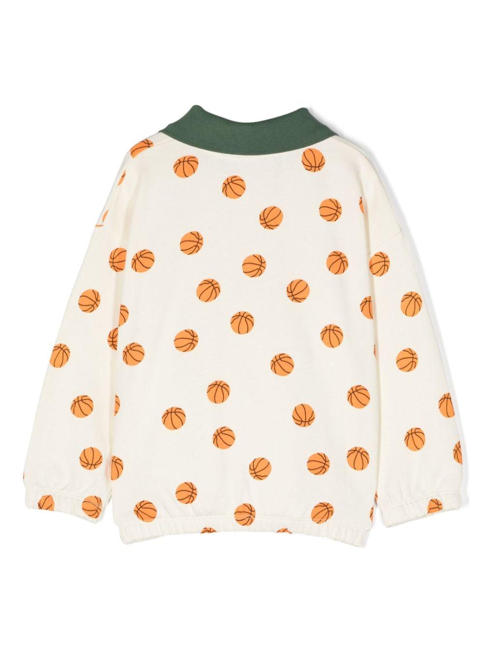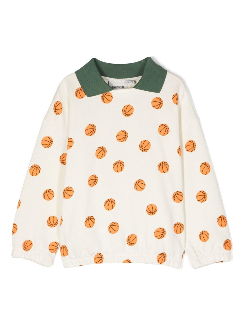 Felpa bianco/multicolor bambina Mini Rodini. Trama jersey, stampa basketball all-over, colletto a contrasto, maniche lunghe con polsini elasticizzati, orlo elasticizzato, tessuto in spugna e design pull on. cotone biologico 100%