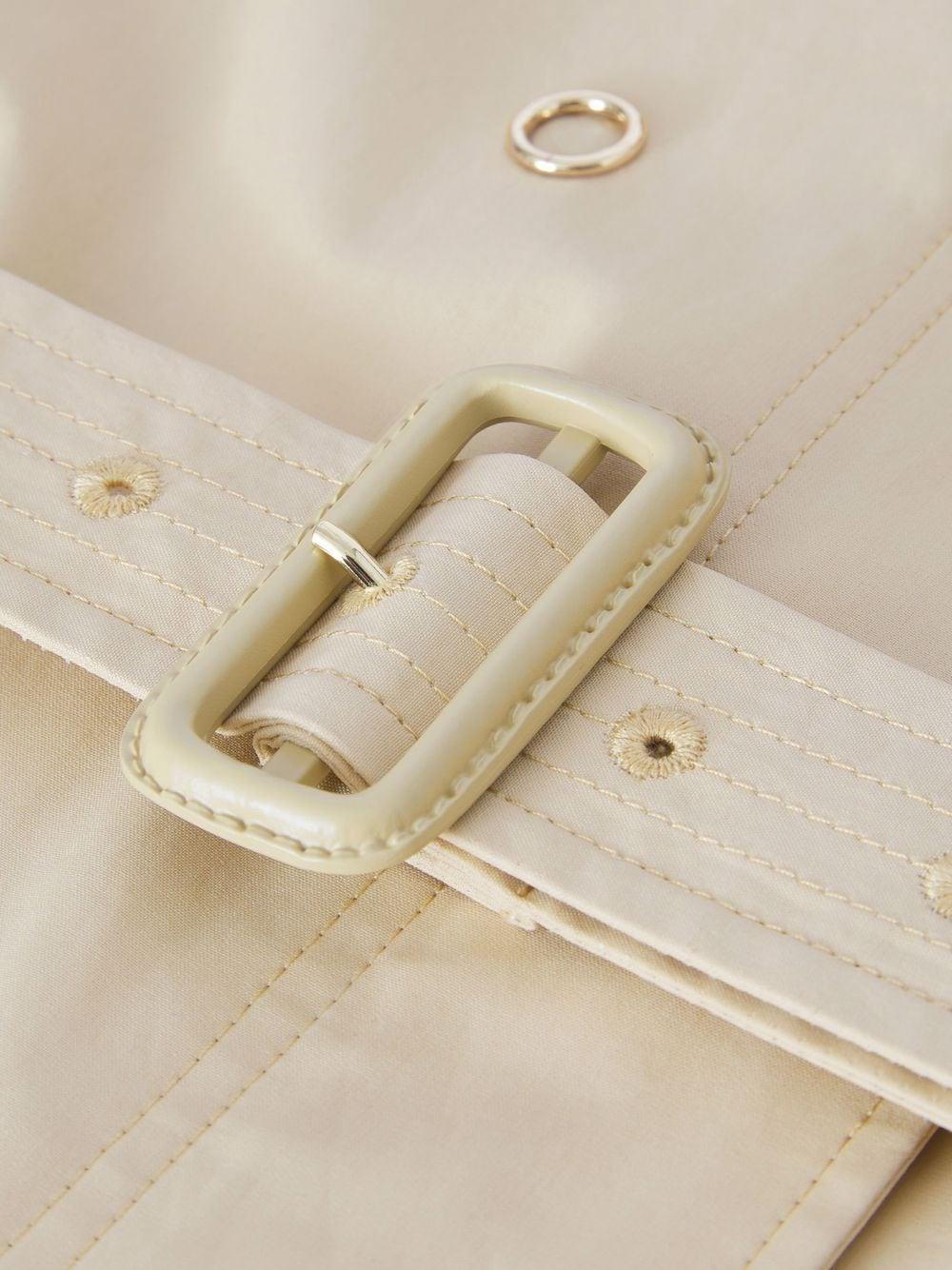 Trench beige bambina Burberry Kids con maniche svasate. Colletto a punta, pattina frangivento, spalline, modello con cintura e chiusura doppiopetto con bottoni. Cotone 100%