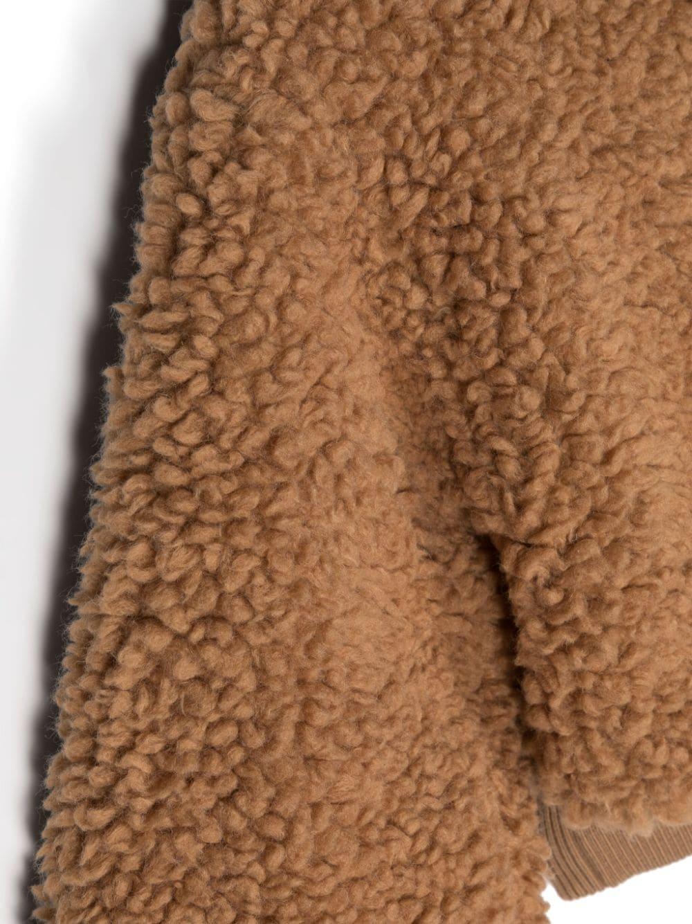 Bomber marrone bambina Dolce & Gabbana Kids. Design in finto shearling, placca con logo, colletto basso a coste, chiusura frontale con zip, due tasche laterali con zip, maniche lunghe e orlo dritto. Acrilico 50%, Poliestere 32%, Lana Vergine 18%