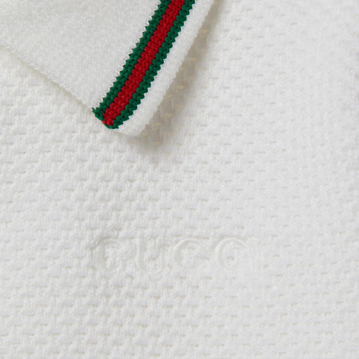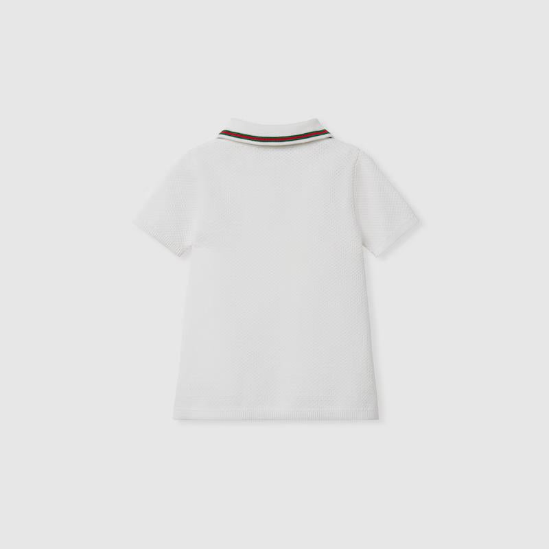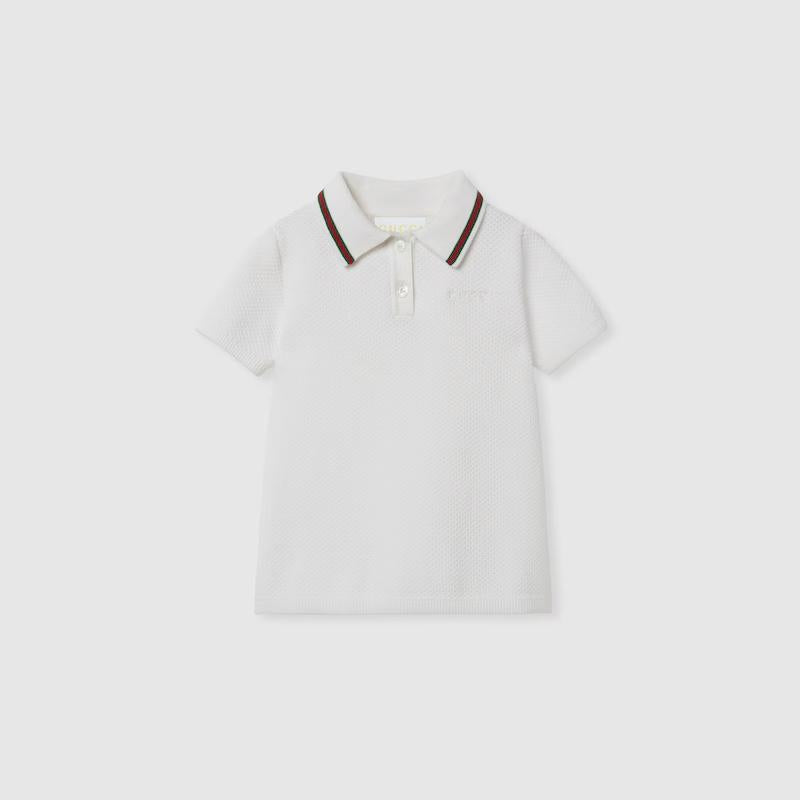 Abito Jersey di cotone bianco GUCCI KIDS.Finiture con Web,ricamo Gucci,colletto modello polo,maniche corte,finiture a coste,mezza chiusura con bottoni.84%cotone 15%poliammide 1%elastan