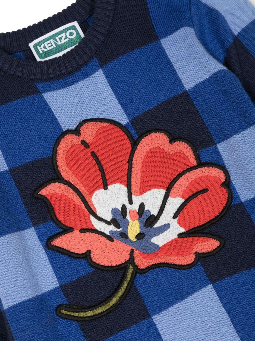 Abito blu e azzurro neonata con stampa, Kenzo Kids, stampa a quadri tartan, ricamo a fiori e abbottonatura sulla spalla.ComposizioneCotone 79%, Viscosa 9%, Poliammide 7%, Lana 5%