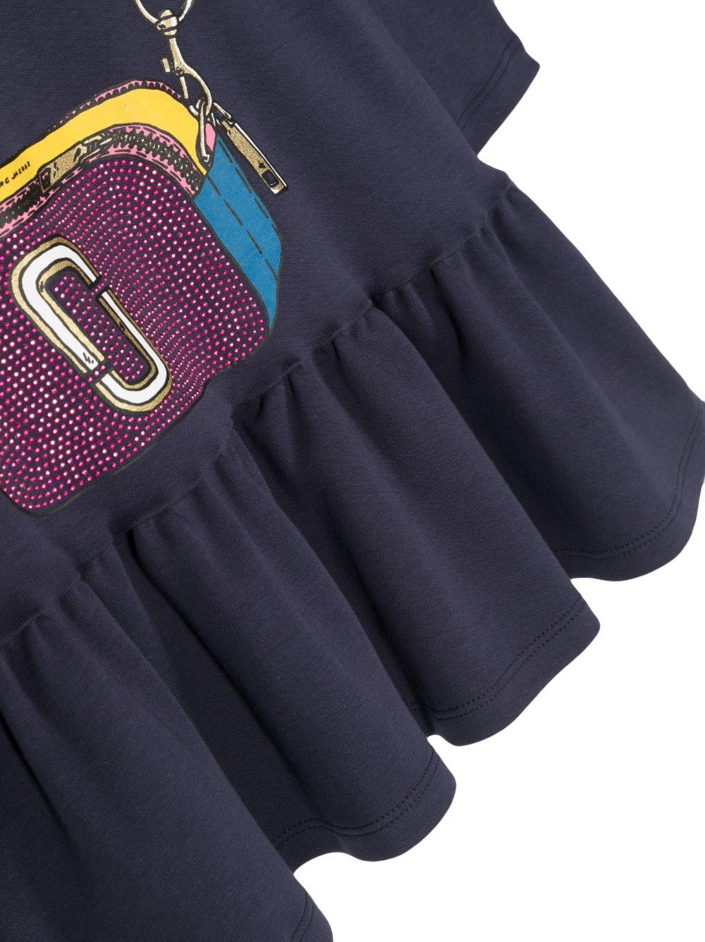 Abito blu bambina Marc Jacobs kids. Stampa grafica, maniche lunghe, orlo increspato e lunghezza al ginocchio. cotone 100%