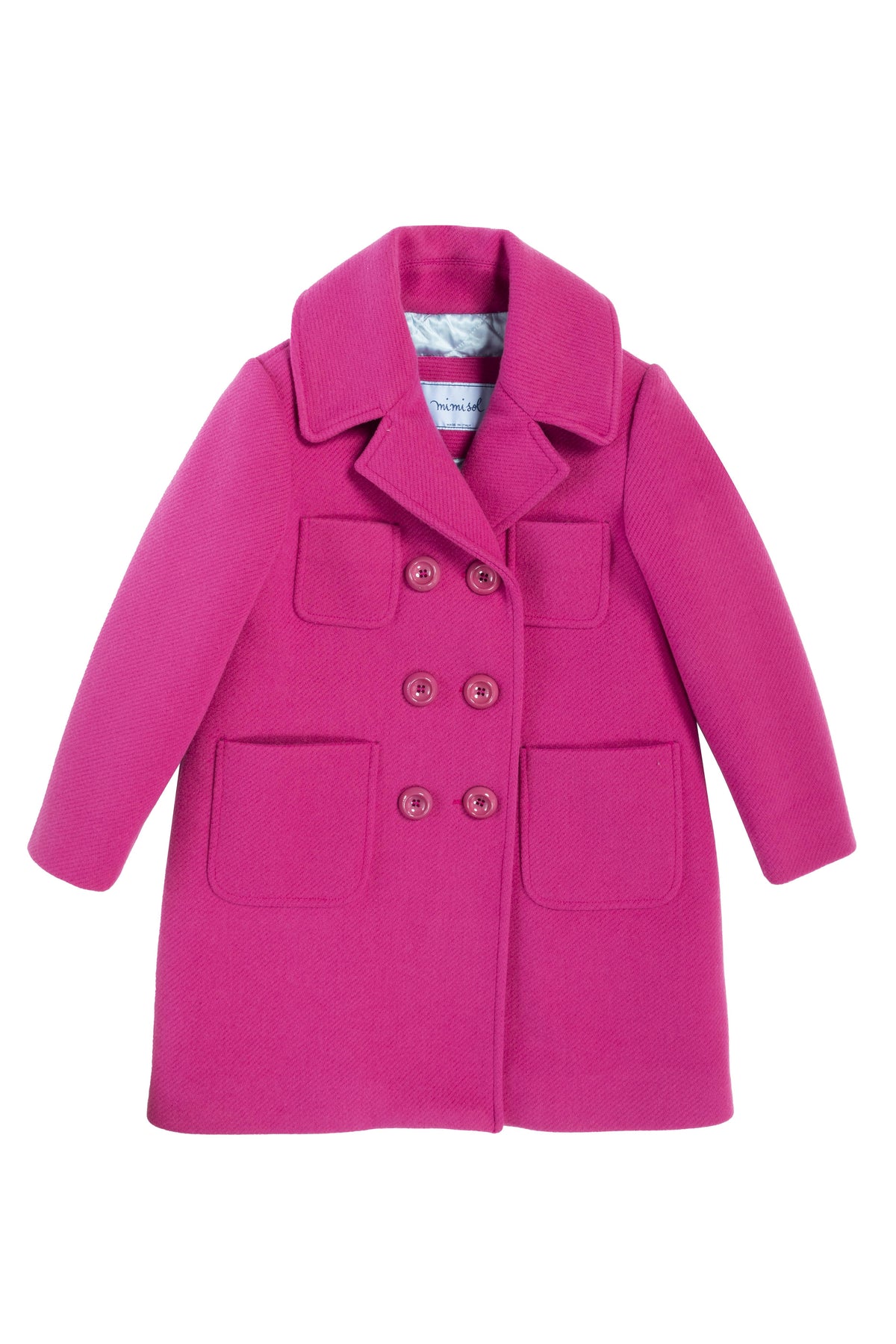 Cappotto fucsia bambina Mi Mi Sol. Tessuto in twill, colletto con revers, chiusura doppiopetto con bottoni, maniche lunghe, numerose tasche applicate e orlo dritto. Poliestere 100%