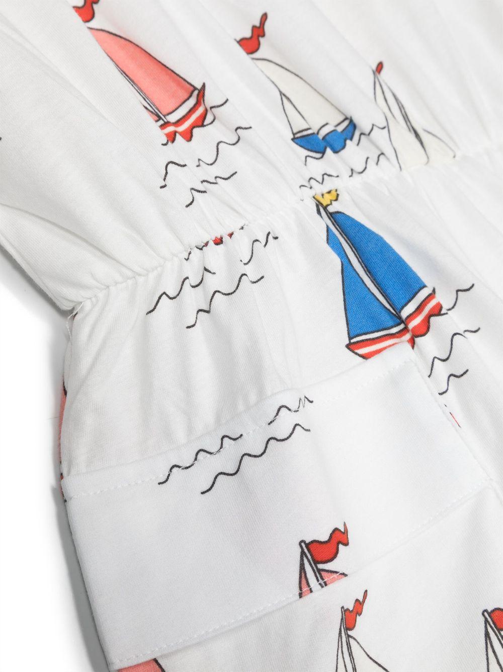 Tuta intera bianca/multicolore con stampa Mini Rodini.Bianco/multicolore, cotone biologico, stampa grafica all-over, design a pezzo unico, scollo rotondo, chiusura con bottoni a pressione sulla spalla, senza maniche, due tasche laterali con patta, vita aderente e orlo dritto.Composizione: cotone biologico 100%