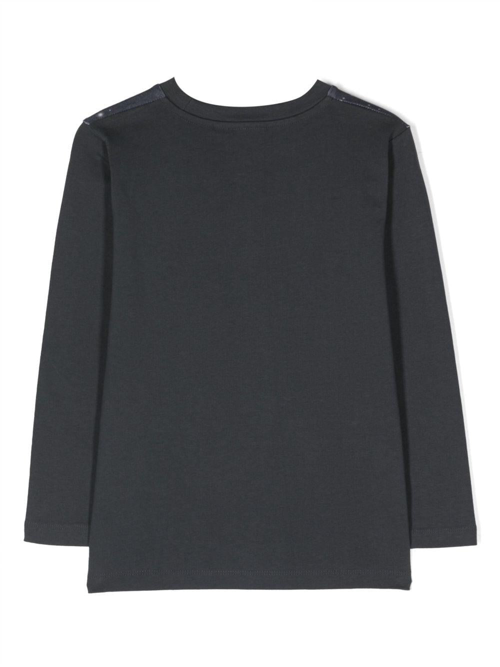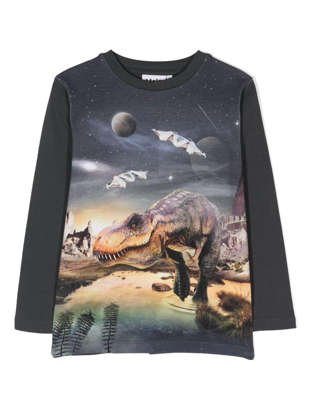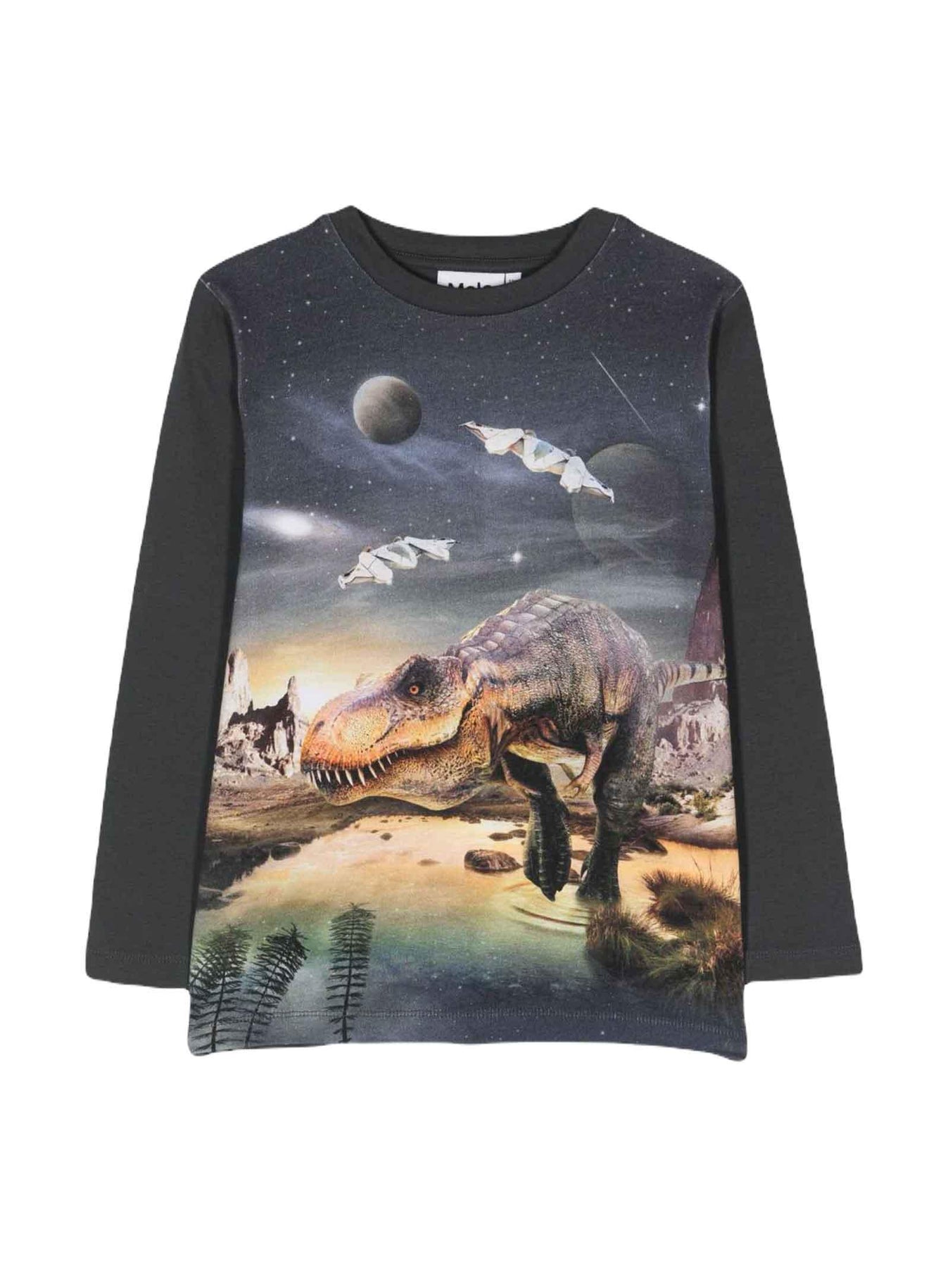 Felpa grigia bambino con stampa, Molo Kids, stampa grafica, girocollo, maniche lunghe e orlo dritto. Cotone Biologico 100%