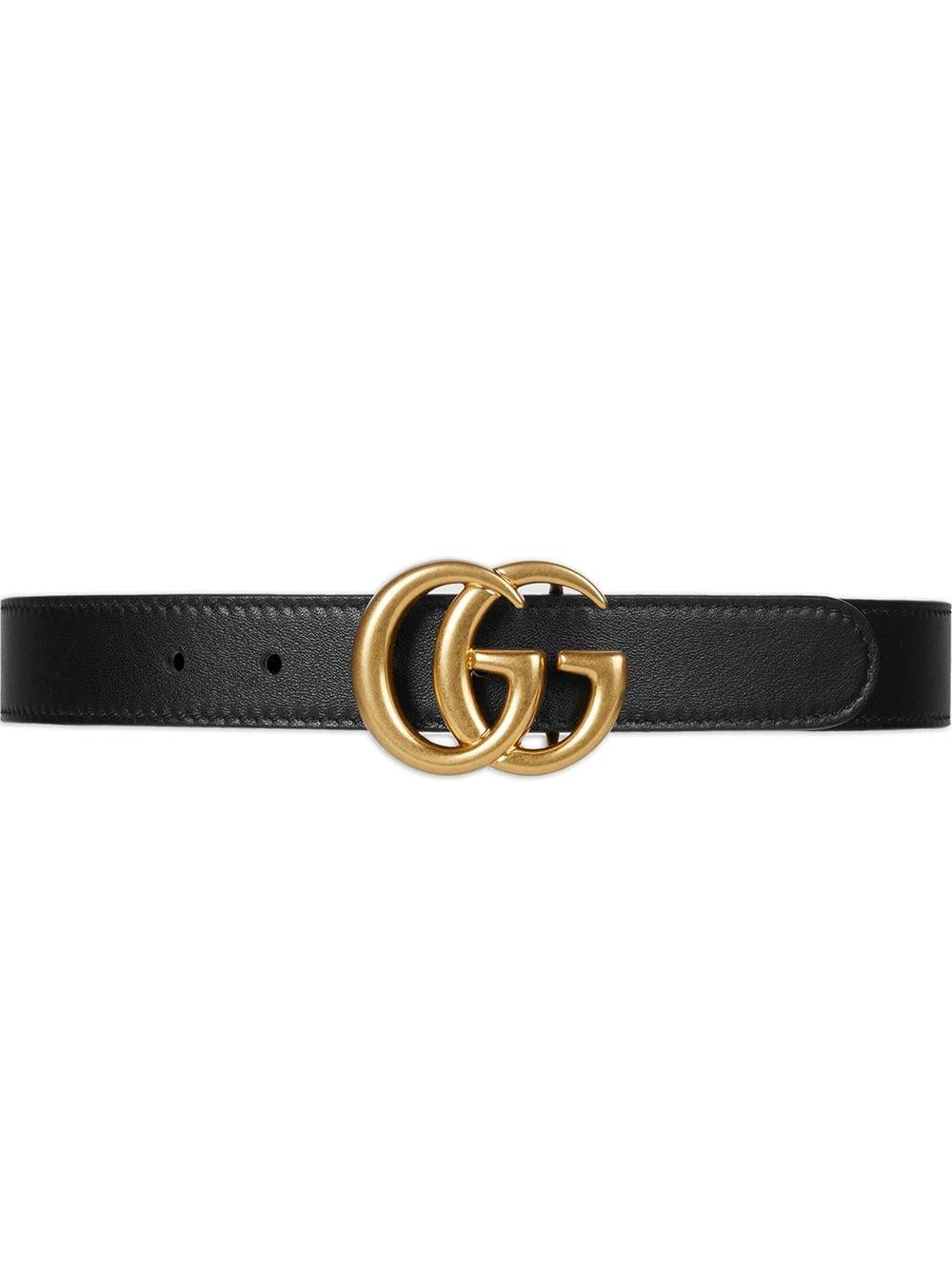 Cintura nera bambino Gucci kids. Chiusura con fibbia con logo, stampa interna con logo, dettagli color oro, fori per fibbia e design regolabile. Pelle di vitello 100%