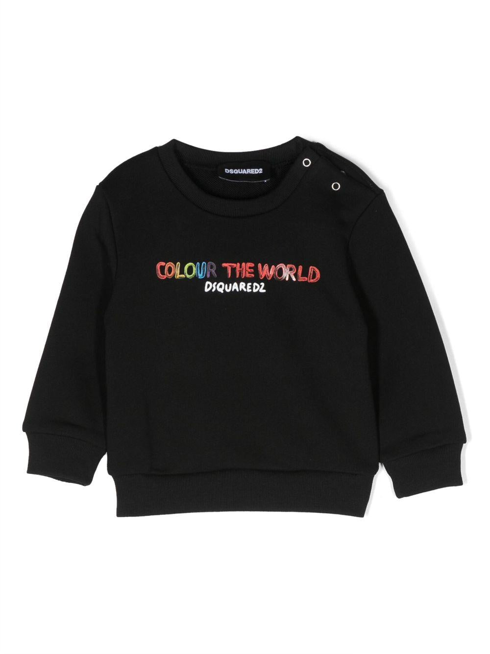 Felpa nera neonata,stampa frontale,Dsquared2 kids.Composizione: Cotone 100%