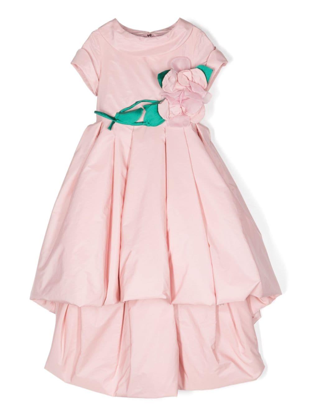 Abito rosa bambina,con applicazioni di fiori,Marchesa