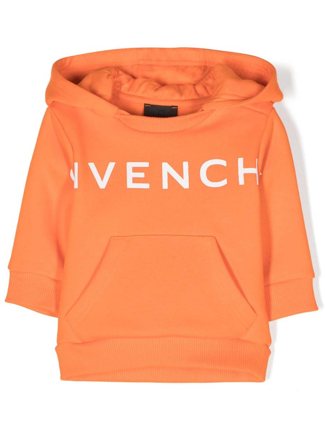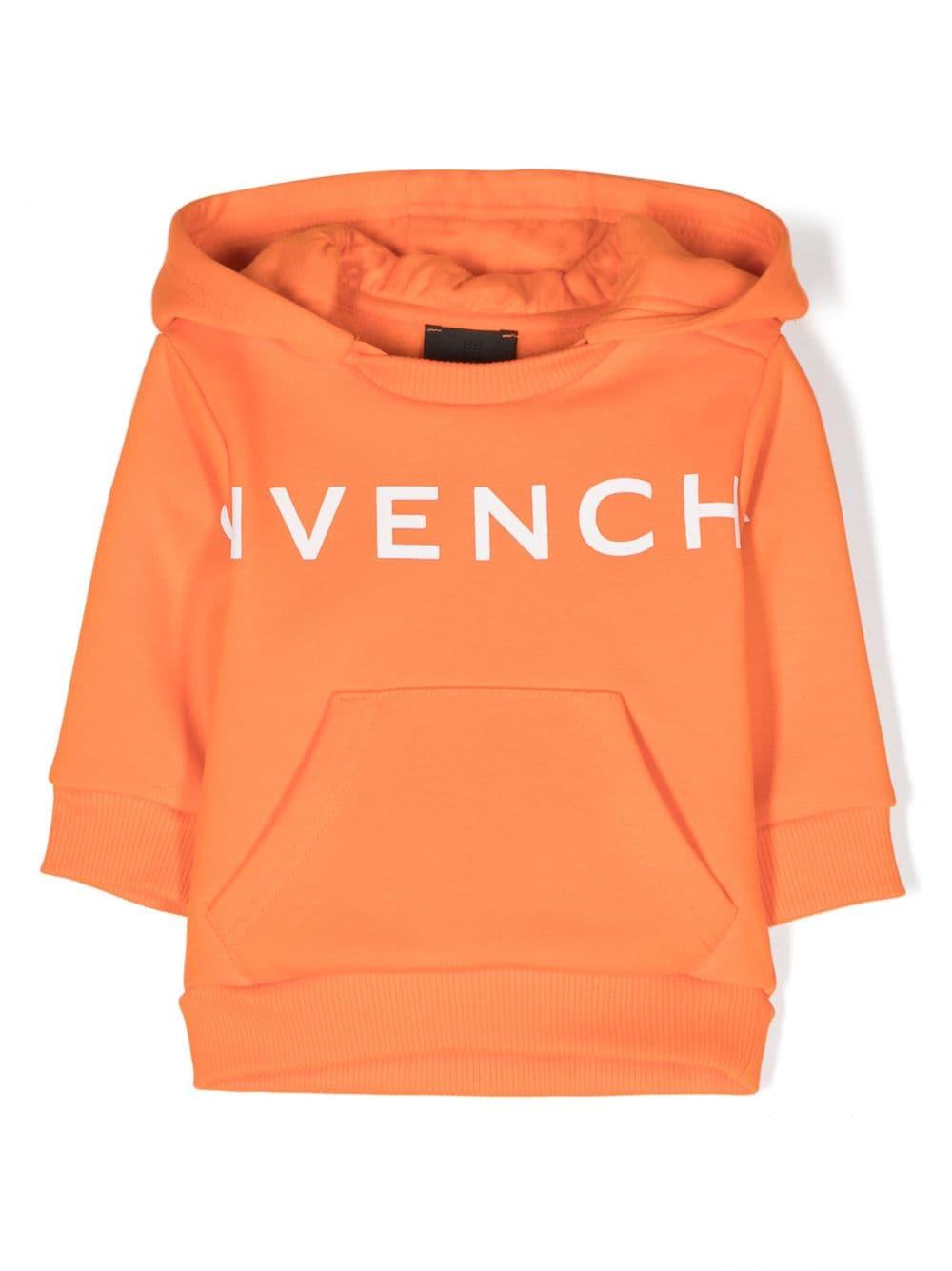 Felpa arancione bambino con stampa multicolor , logo stampato e cappuccio