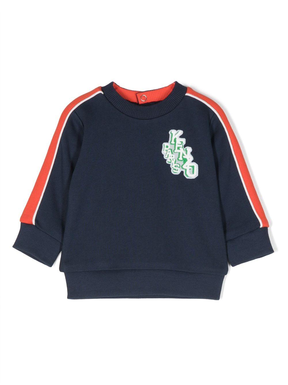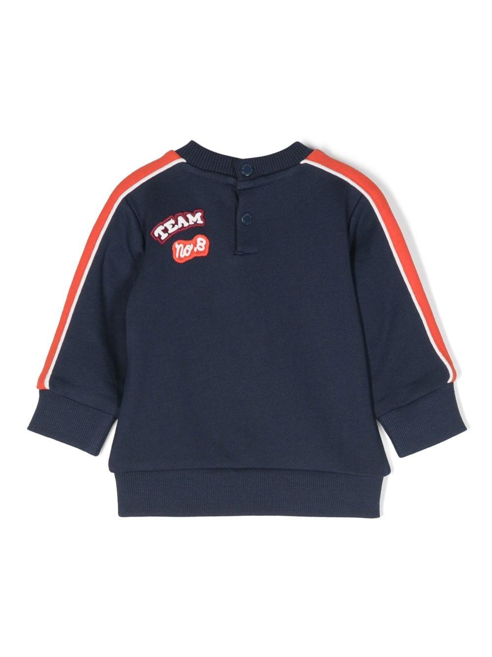 Felpa blu,con stampa frontale e chiusura con bottoni a pressione sulla spalla