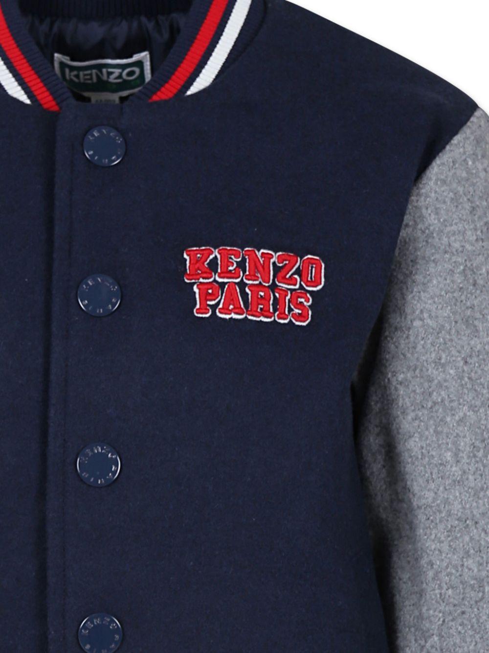 Bomber blu bambino Kenzo Kids. Design con inserti color-block, dettaglio con applicazione, bordo a righe, colletto basso a coste, chiusura frontale con abbottonatura, maniche lunghe e orlo dritto. lana 60%, poliestere 40%