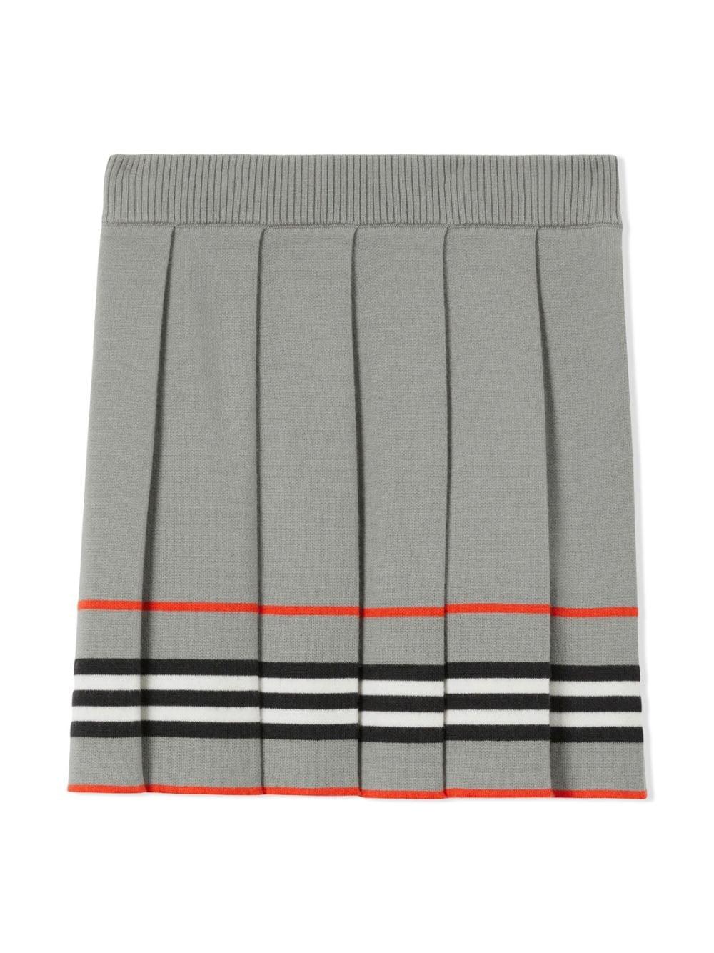 Gonna grigia bambina Burberry Kids. Pieghe a cannone.Lana 96%, Poliammide 3%, Elastam 1%