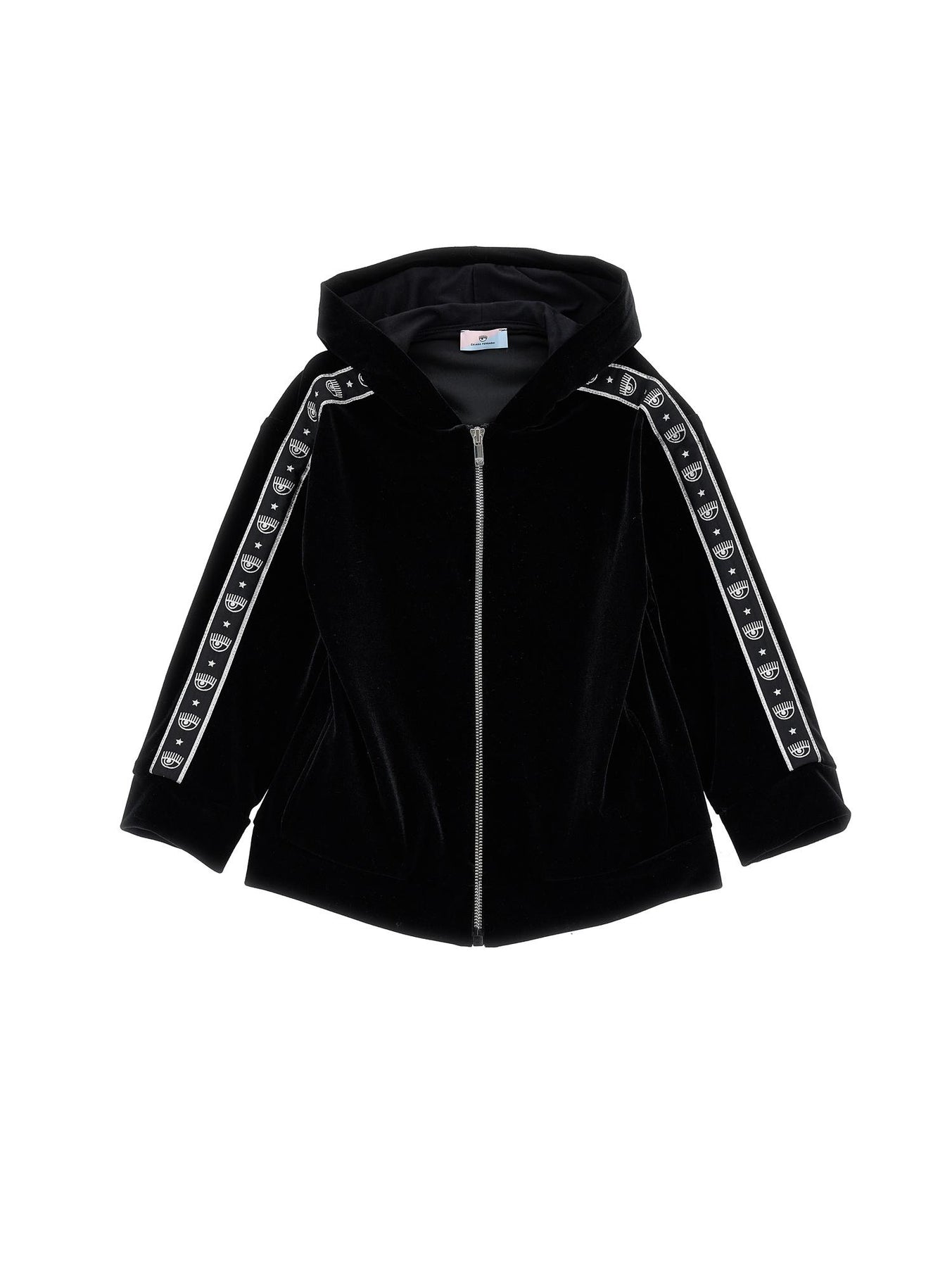 Felpa nera bambina con logo laterale, Chiara Ferragni kids, con cappuccio.Composizionepoliestere 90%, elastam 10%