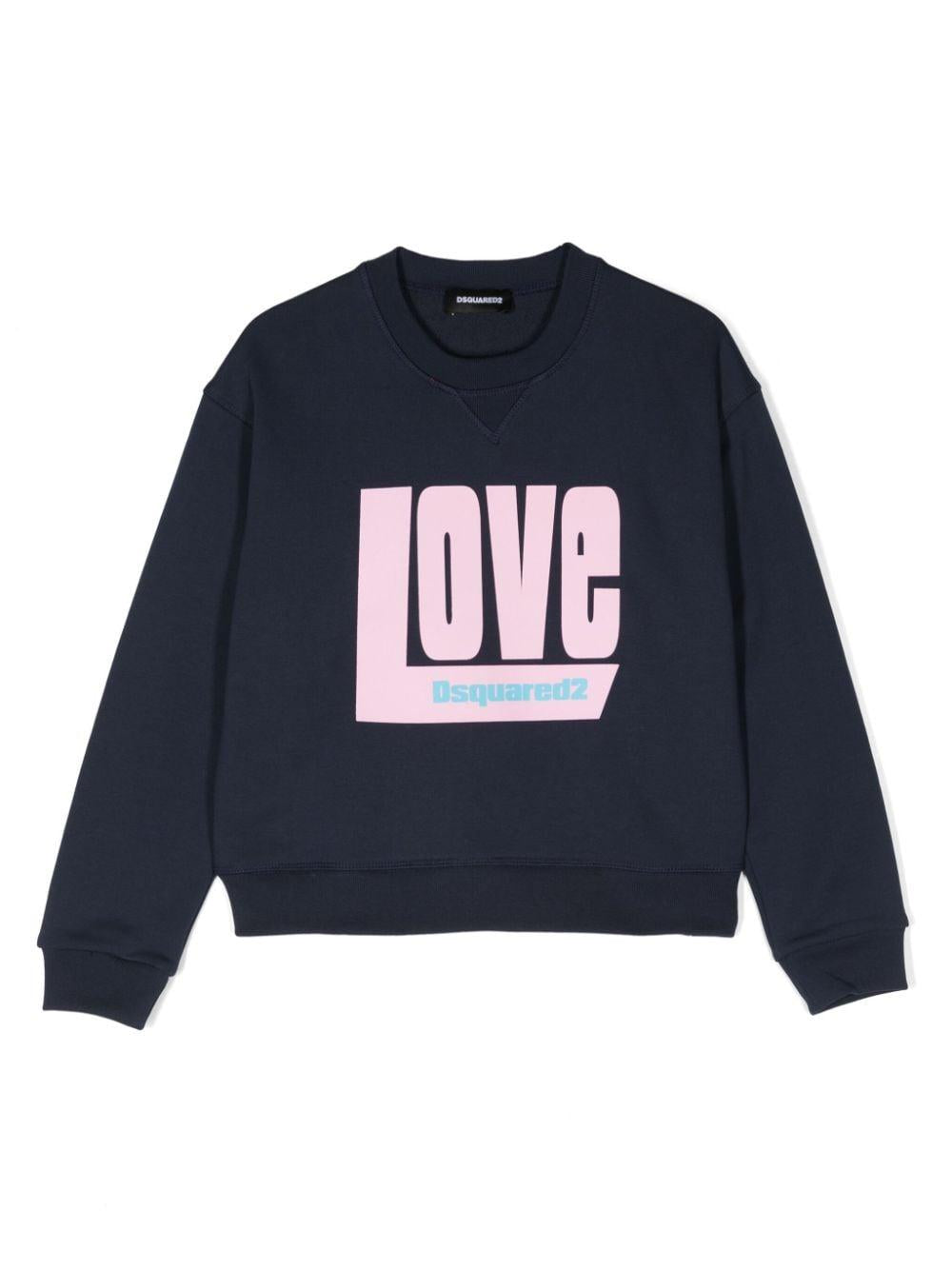 Felpa nera/rosa bambina Dsquared2 Kids. Stampa con logo sul davanti,girocollo e maniche lunghe. Composizione: cotone 100%