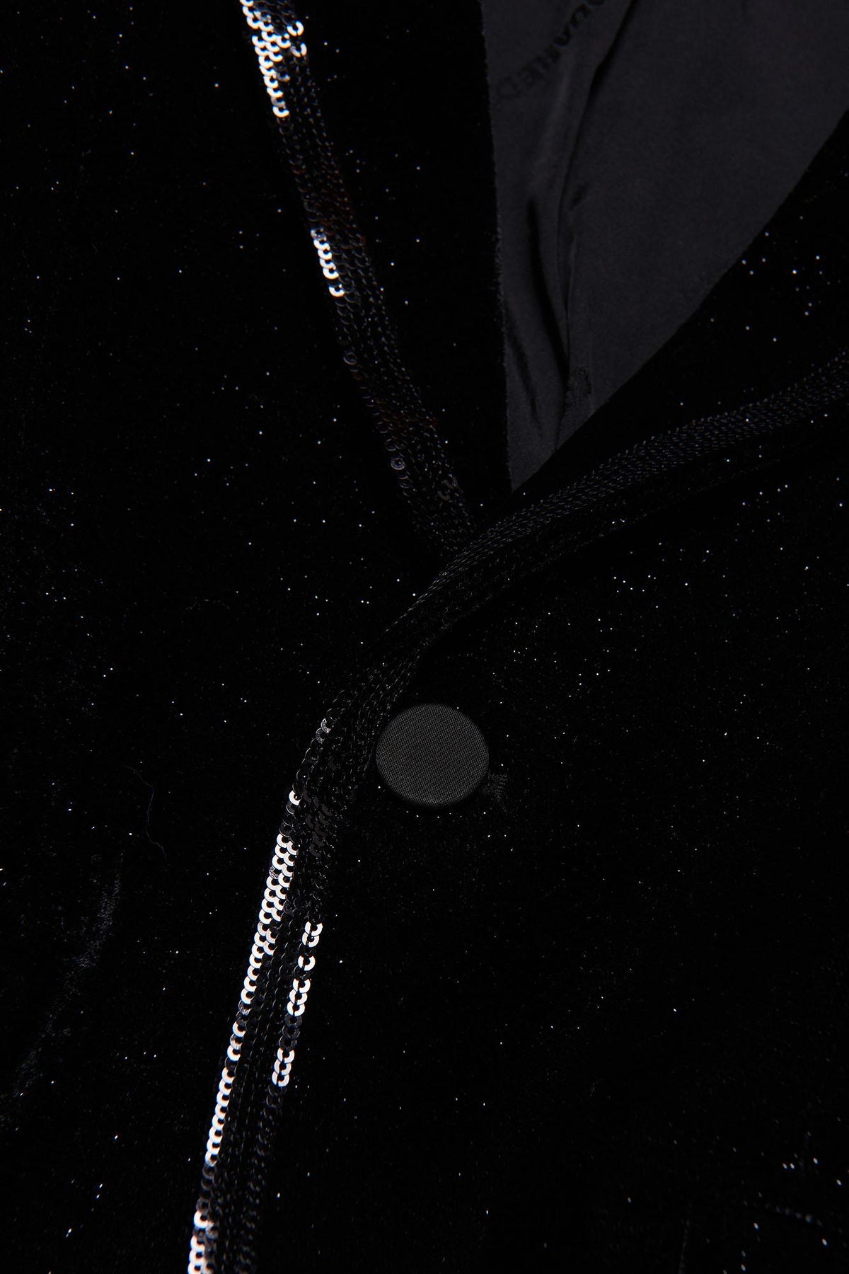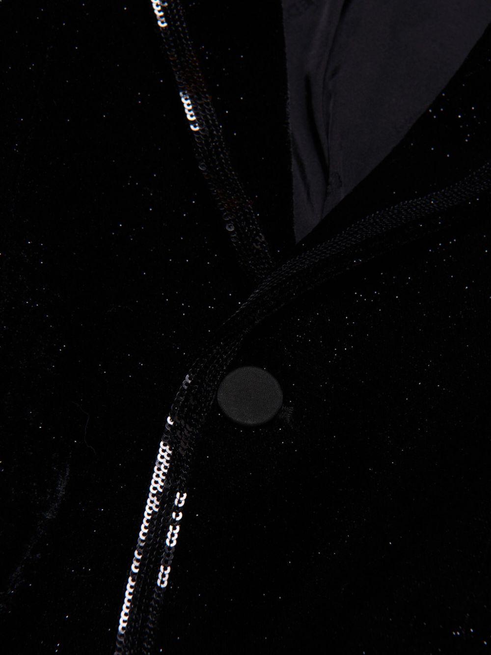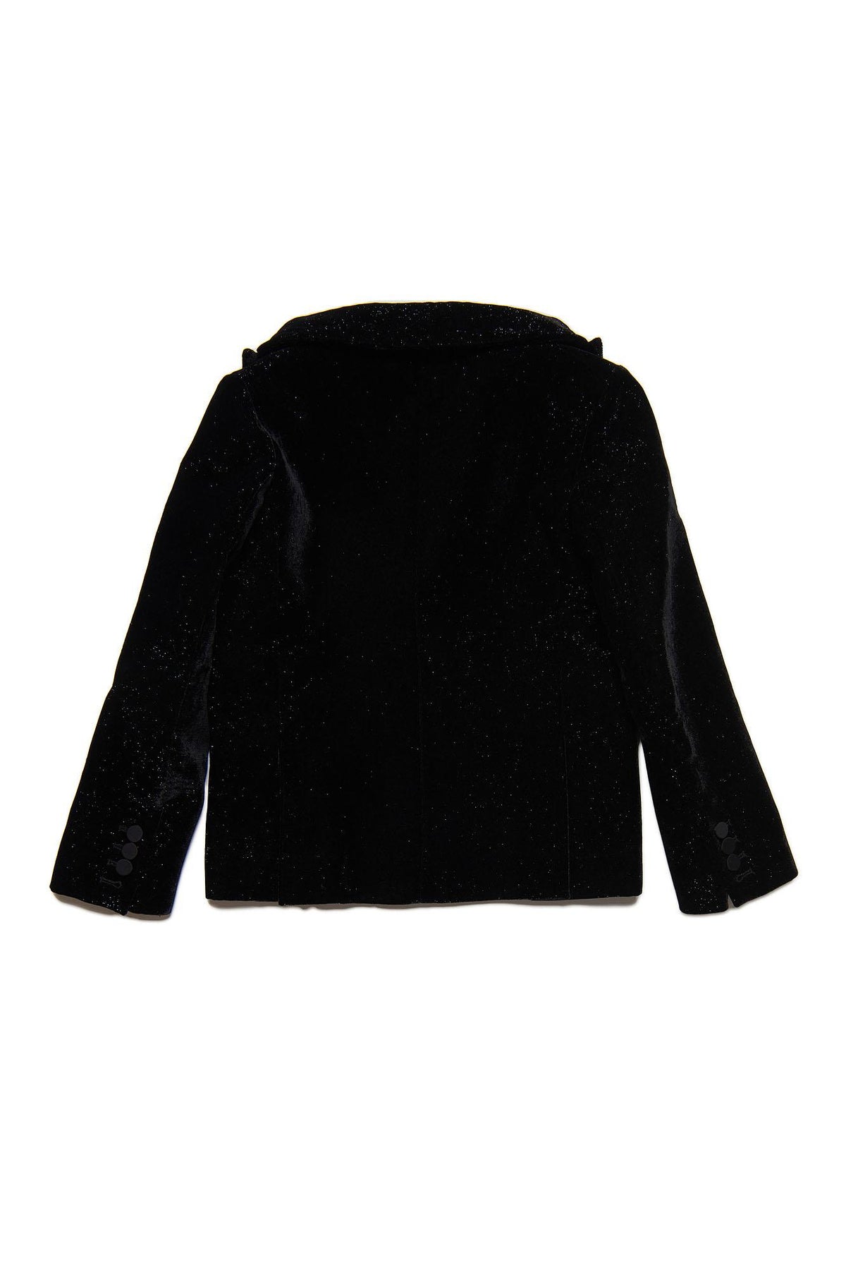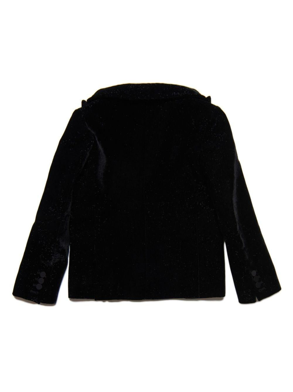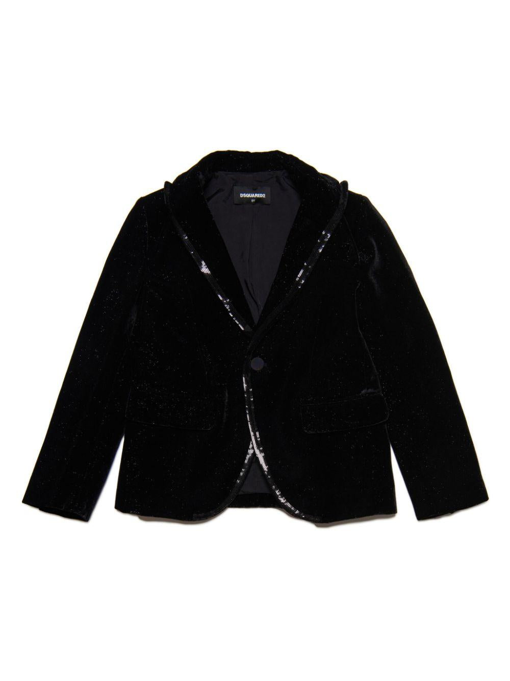 Giacca nera in velluto bambina,Dsquared2 Kids.Nero, velluto, dettaglio con glitter, decorazione con paillettes, revers larghi a punta, chiusura frontale con bottoni, maniche lunghe, orli con bottone e orlo dritto.Composizione: poliestere 100%