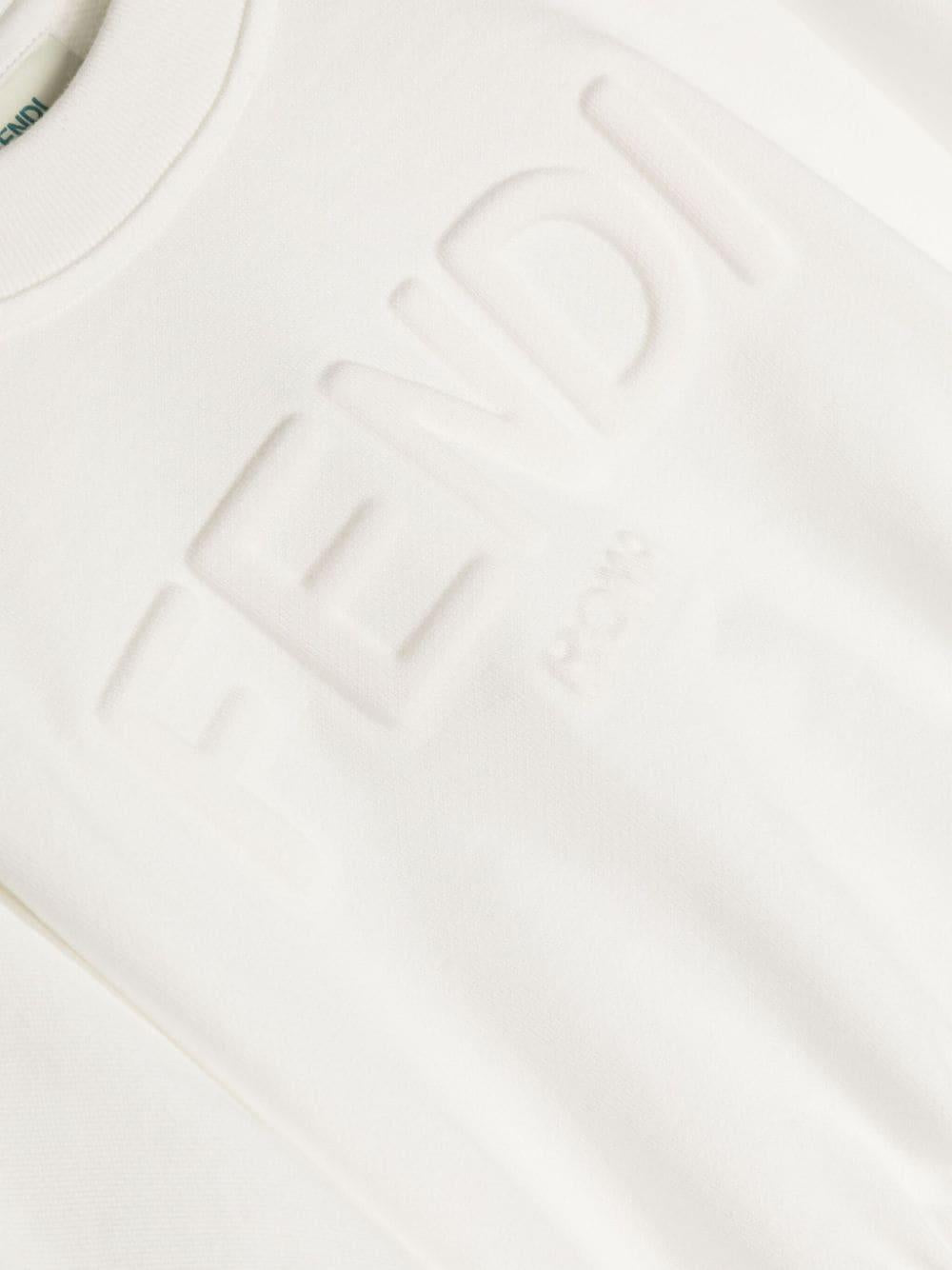 Top in Felpa bianca a maniche corte Fendi Kids. Con elastico in vita e logo Fendi effetto 3d tone on tone sul davanti.Made in ItalyComposizione: Tessuto esterno: 100% cotone