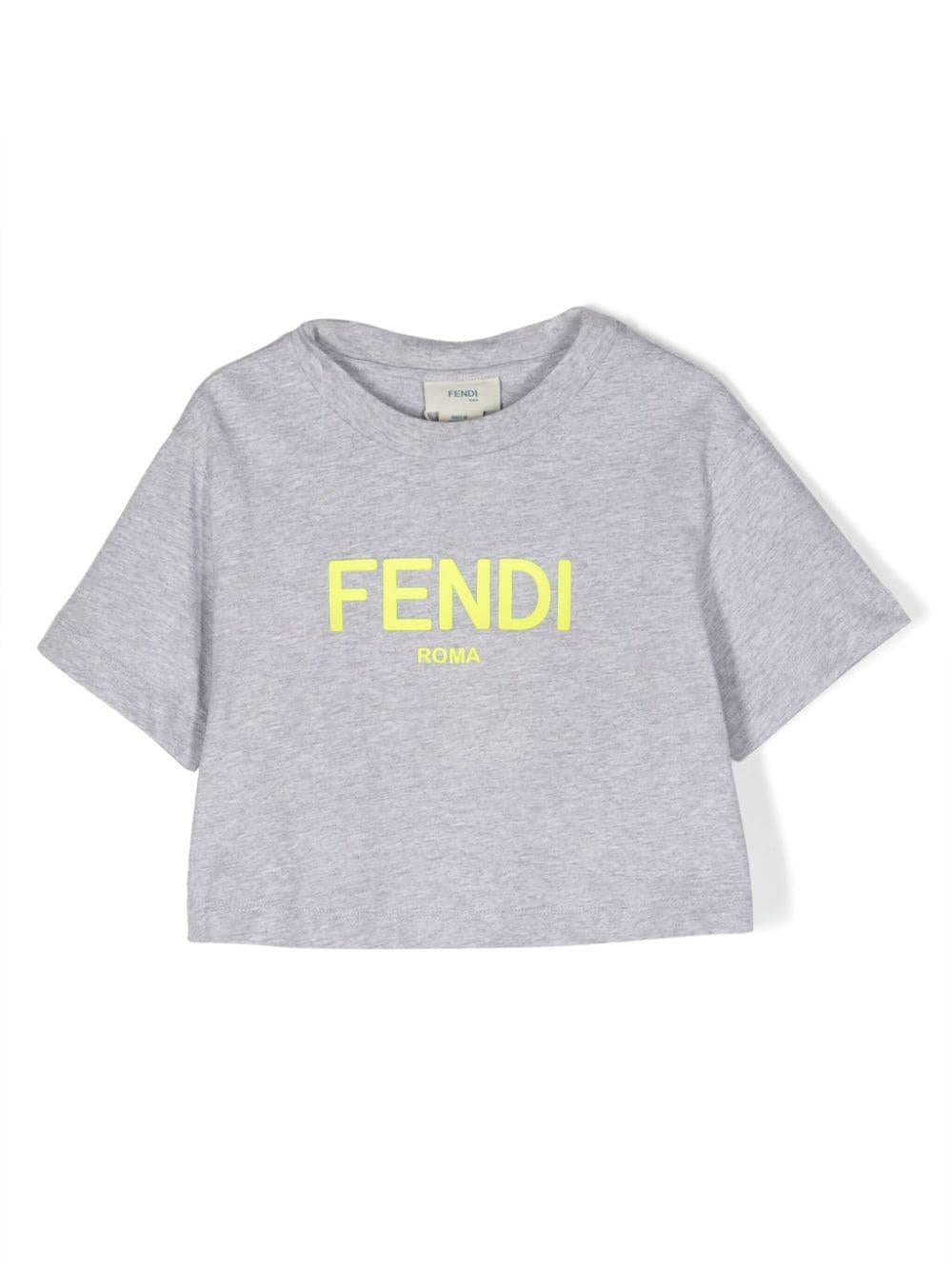 Maglietta grigia bambina,logo giallo,Fendi kids