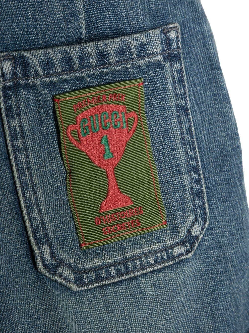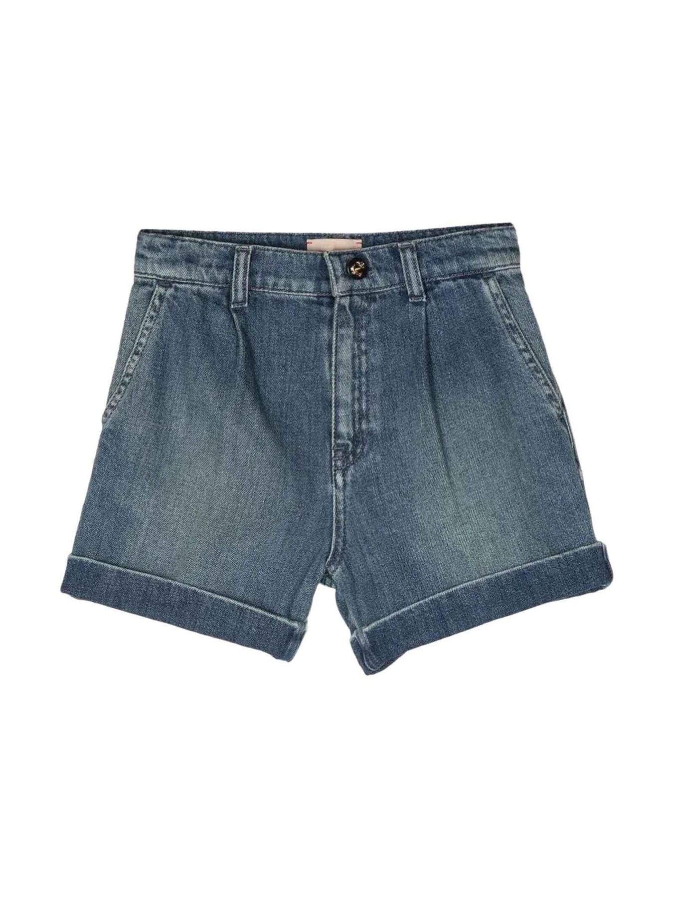 Bermuda blu bambino Gucci kids. Passanti, chiusura frontale con bottoni e applicazione posteriore con logo. Cotone 100%
