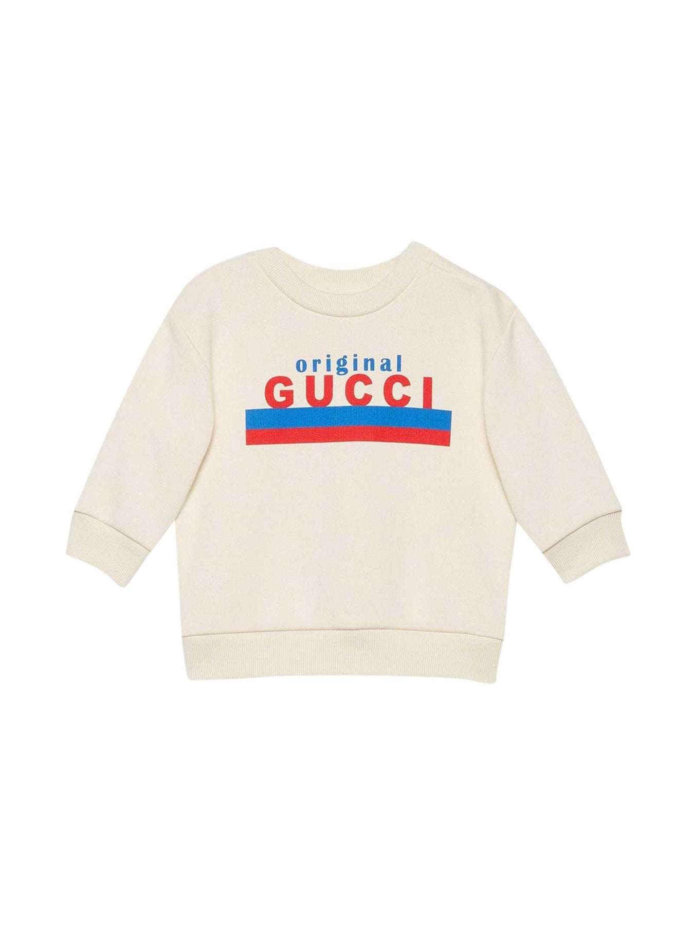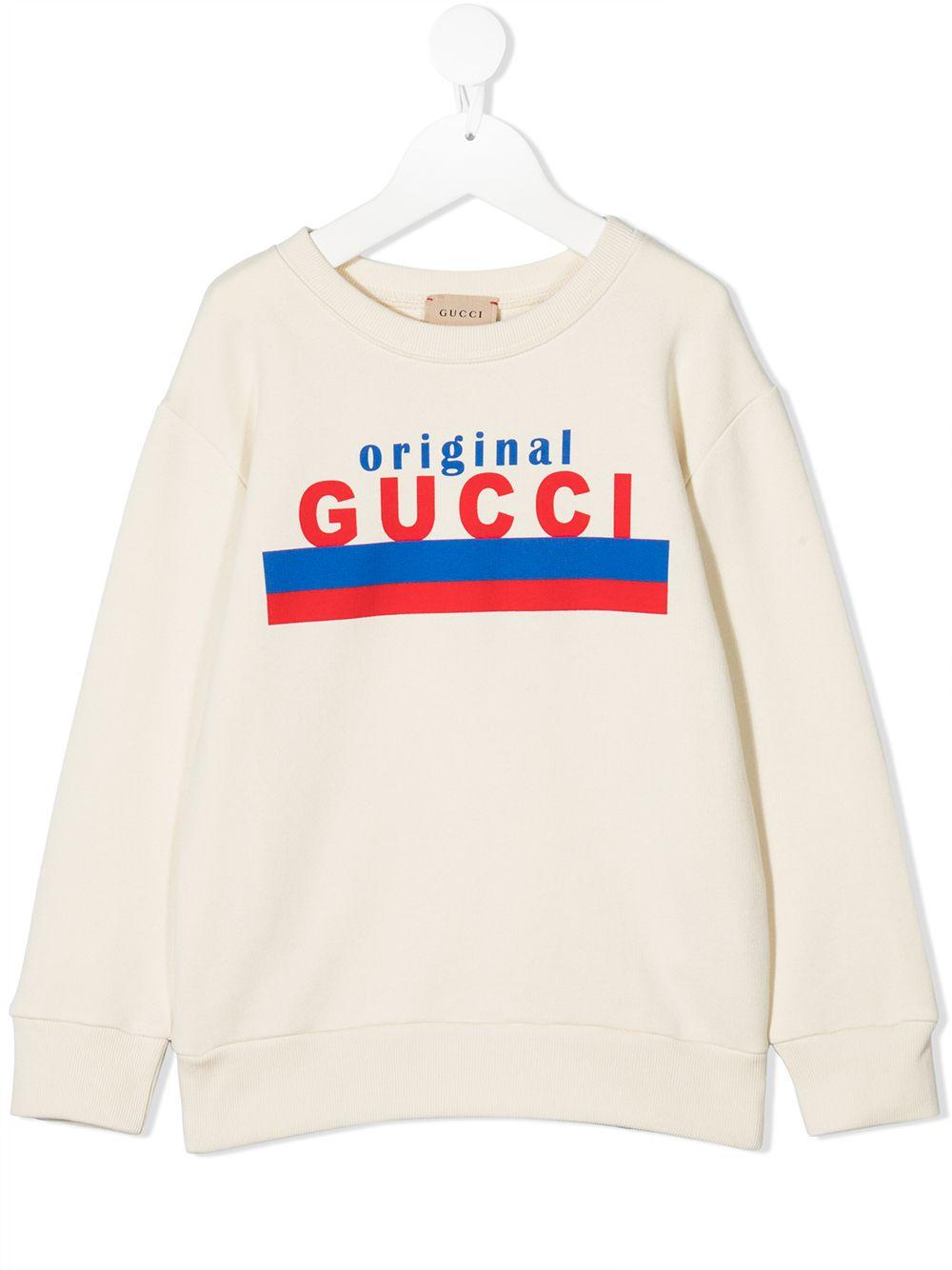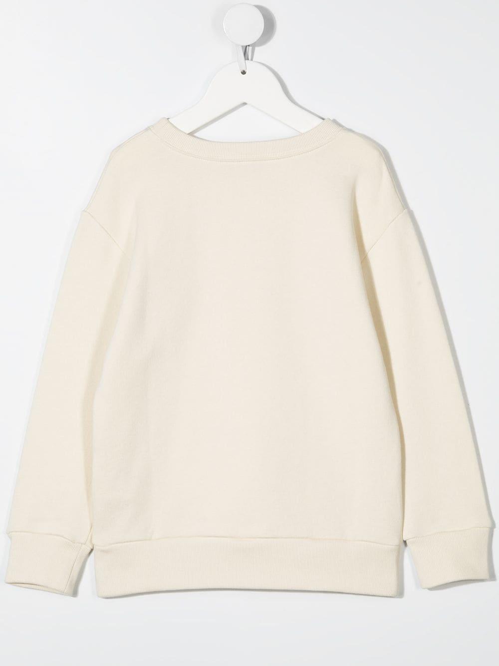 Felpa bianca Gucci Kids con stampa sul davanti, scollo tondo e maniche lunghe. 100% cotone