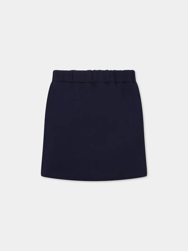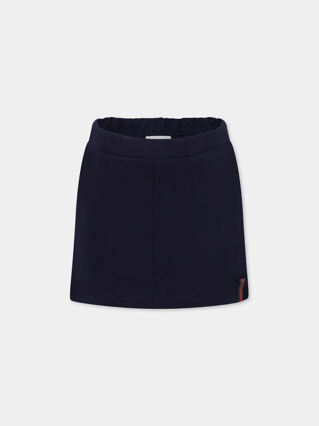 Gonna blu GUCCI KIDS. Vita elasticizzata,tasche laterali,decorata con dettaglio nastro Web verde e rosso sul davantiretrò. 100%cotone