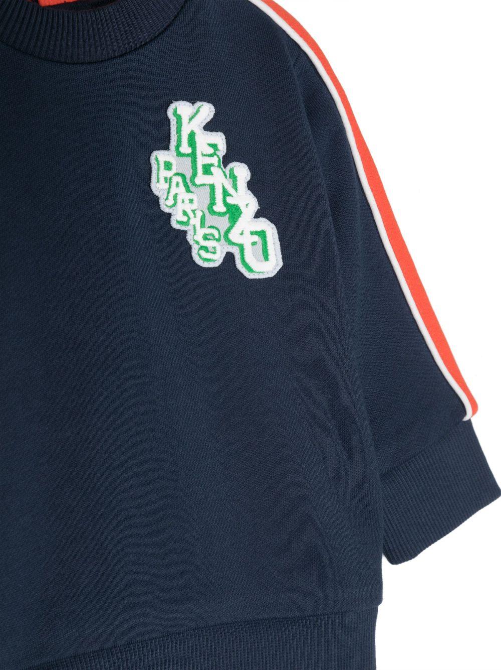 Felpa blu neonato Kenzo kids. Applicazione con logo sul petto, scollo rotondo, chiusura posteriore con bottone, maniche lunghe, dettaglio laterale a righe e orlo dritto. Cotone 100%
