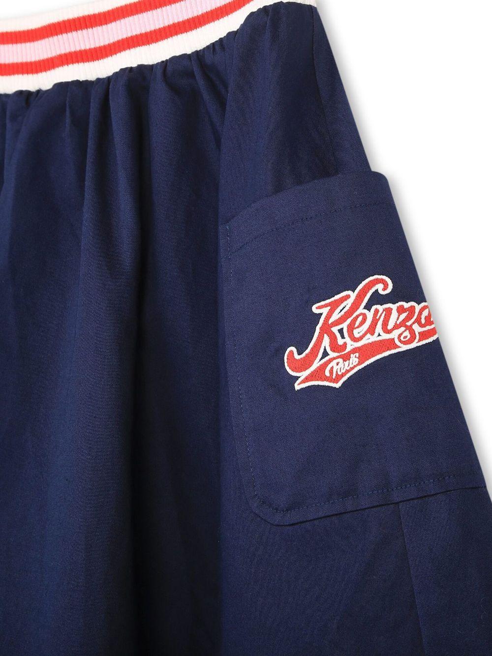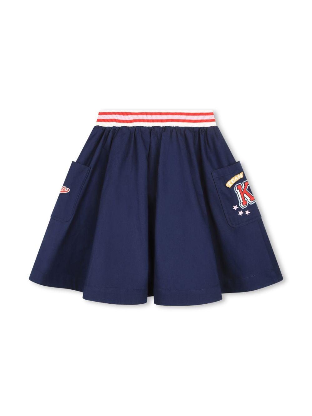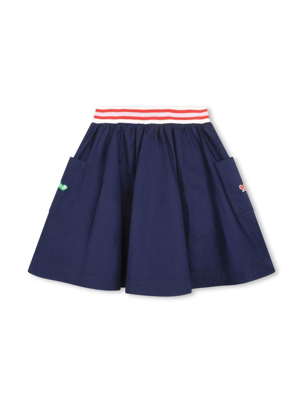 Gonna blu bambina Kenzo Kids. Vita elasticizzata, desgin svasato, due tasche laterali e applicazione. cotone 100%
