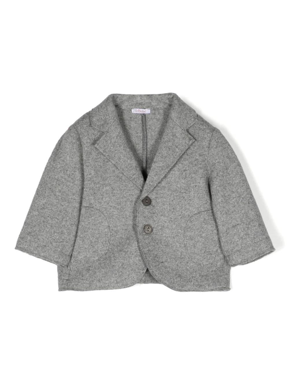 Giacca grigia neonato Le Bebé. Revers classici e abbottonatura frontale. lana 70%, poliammide 25%, fibra sintetica 5%