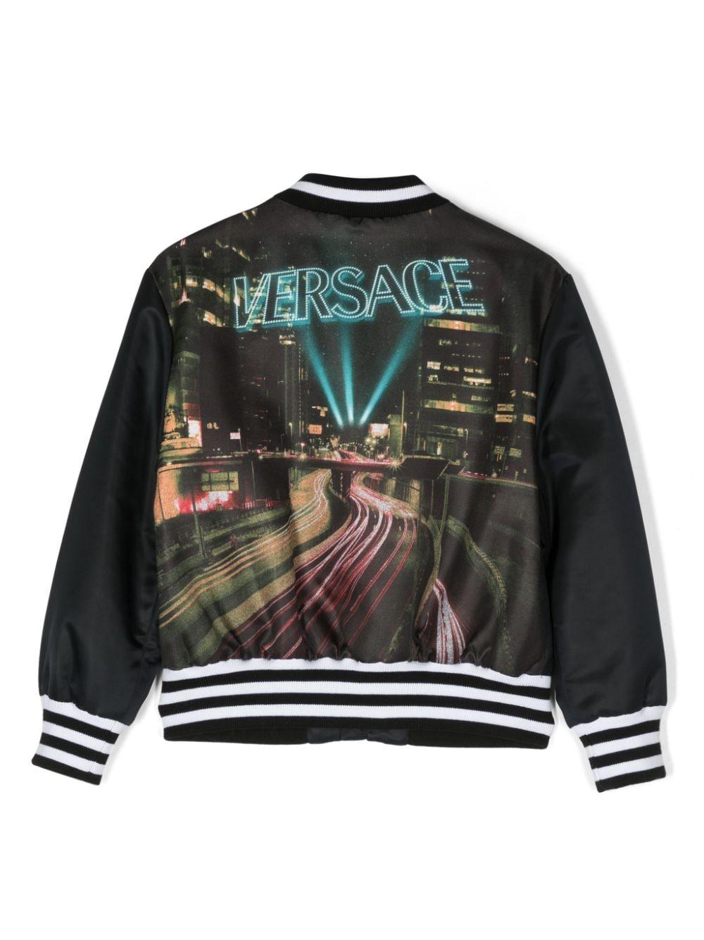 Giubbino nero bambina con stampa posteriore 10126061A09115 6B140 VERSACE