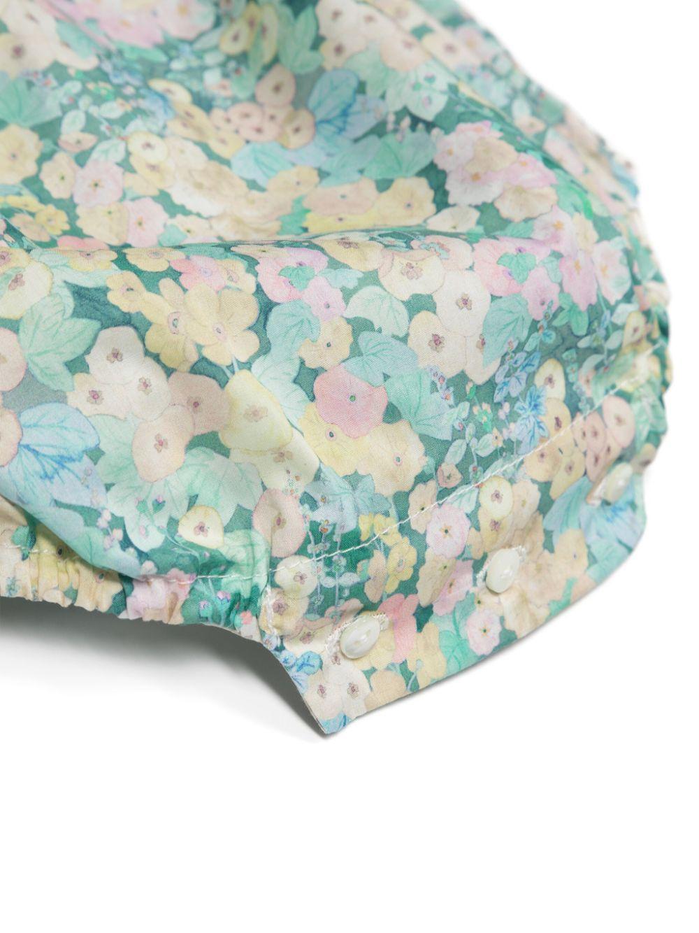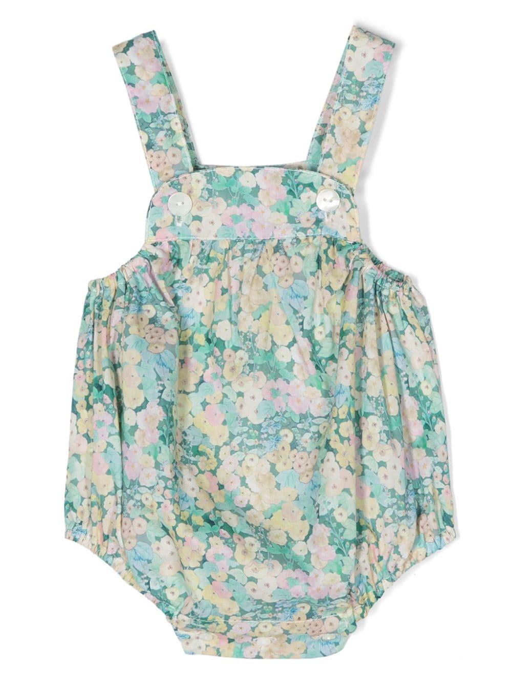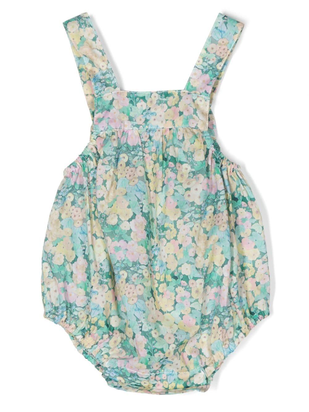 Salopette a fiori mariella ferrari.Verde chiaro/multicolore,cotone,stampa con fiori all-over,spalline larghe,scollo quadrato,rifinitura ,chiusura frontale con bottoni.cotone 100%
