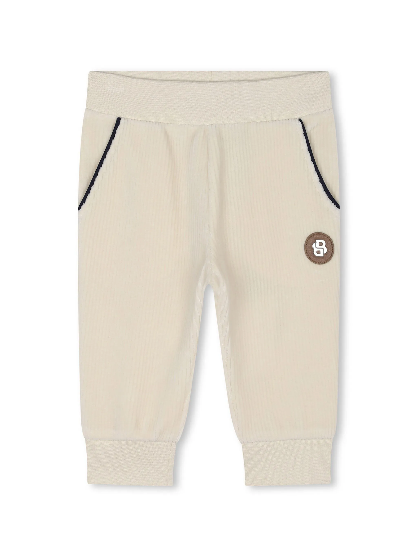 Pantaloni BOSS KIDS.Panna,velluto a coste,applicazione con logo,due tasche laterali,vita elasticizzata.
