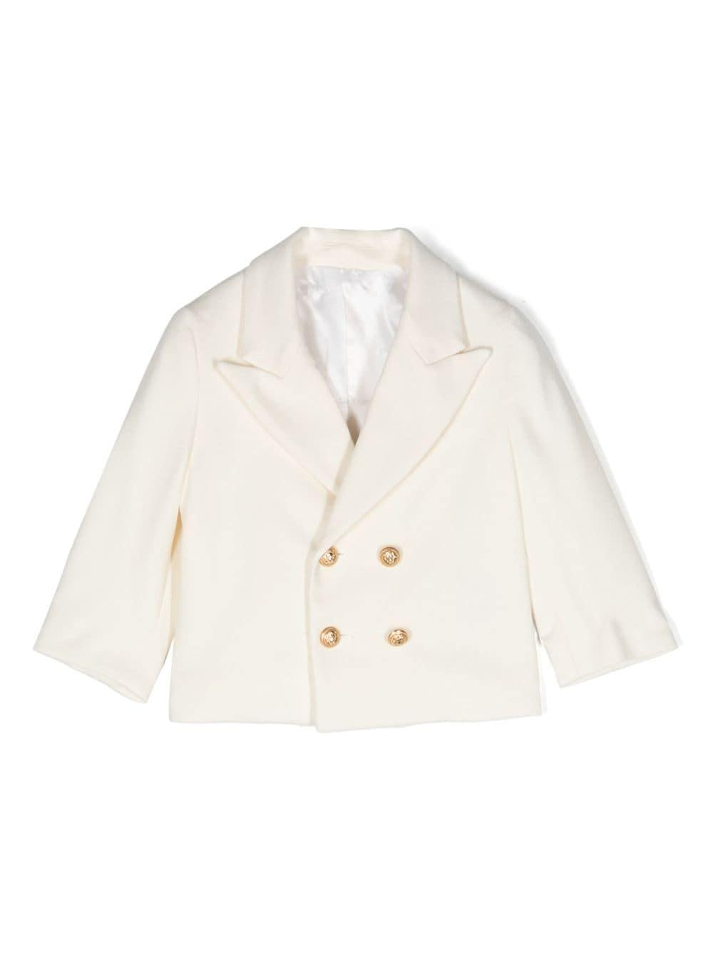 Giacca doppiopetto bianca neonato con bottoni oro Balmain kids68%Viscose 28%Polyamide 4%Elastane