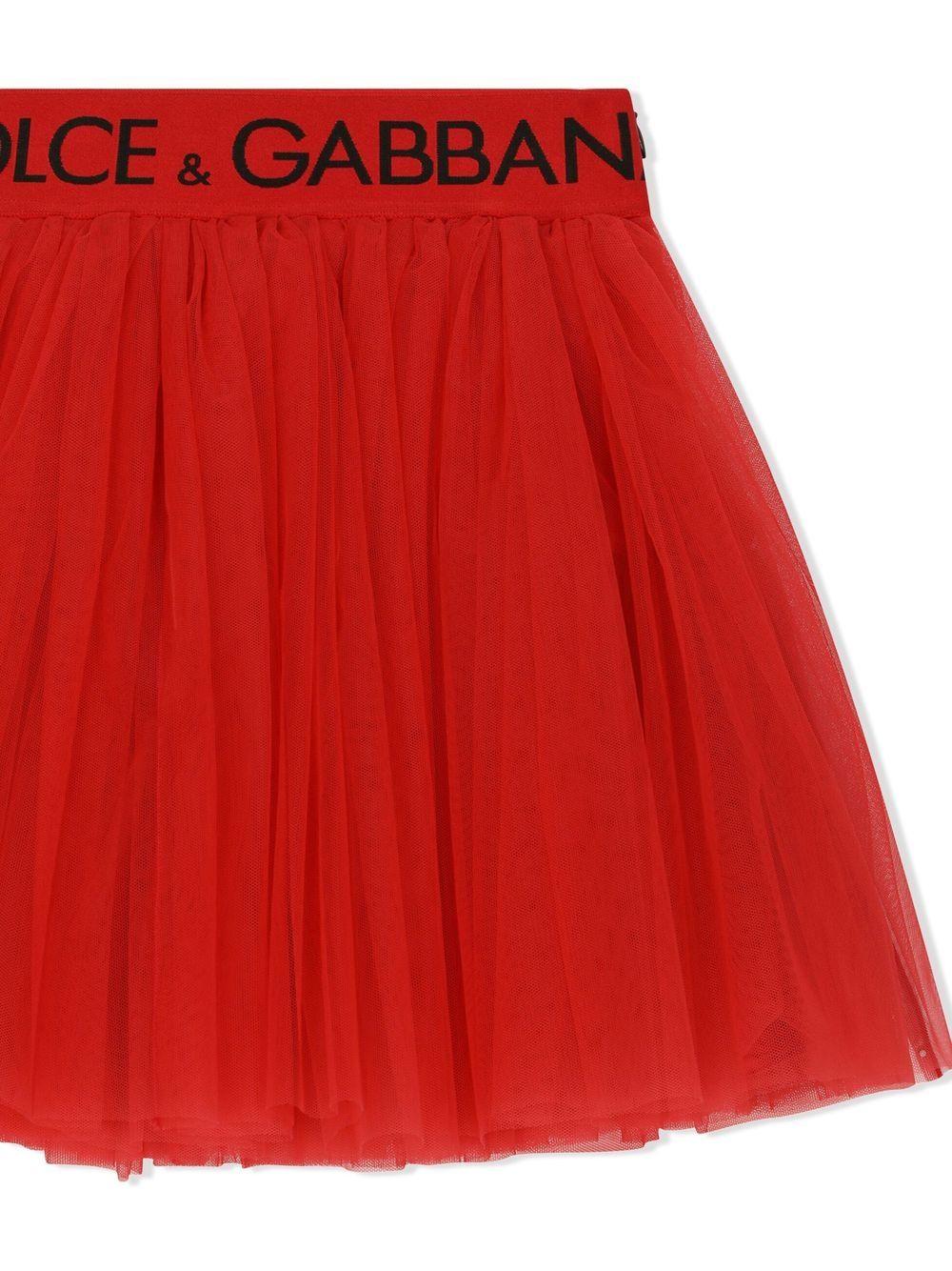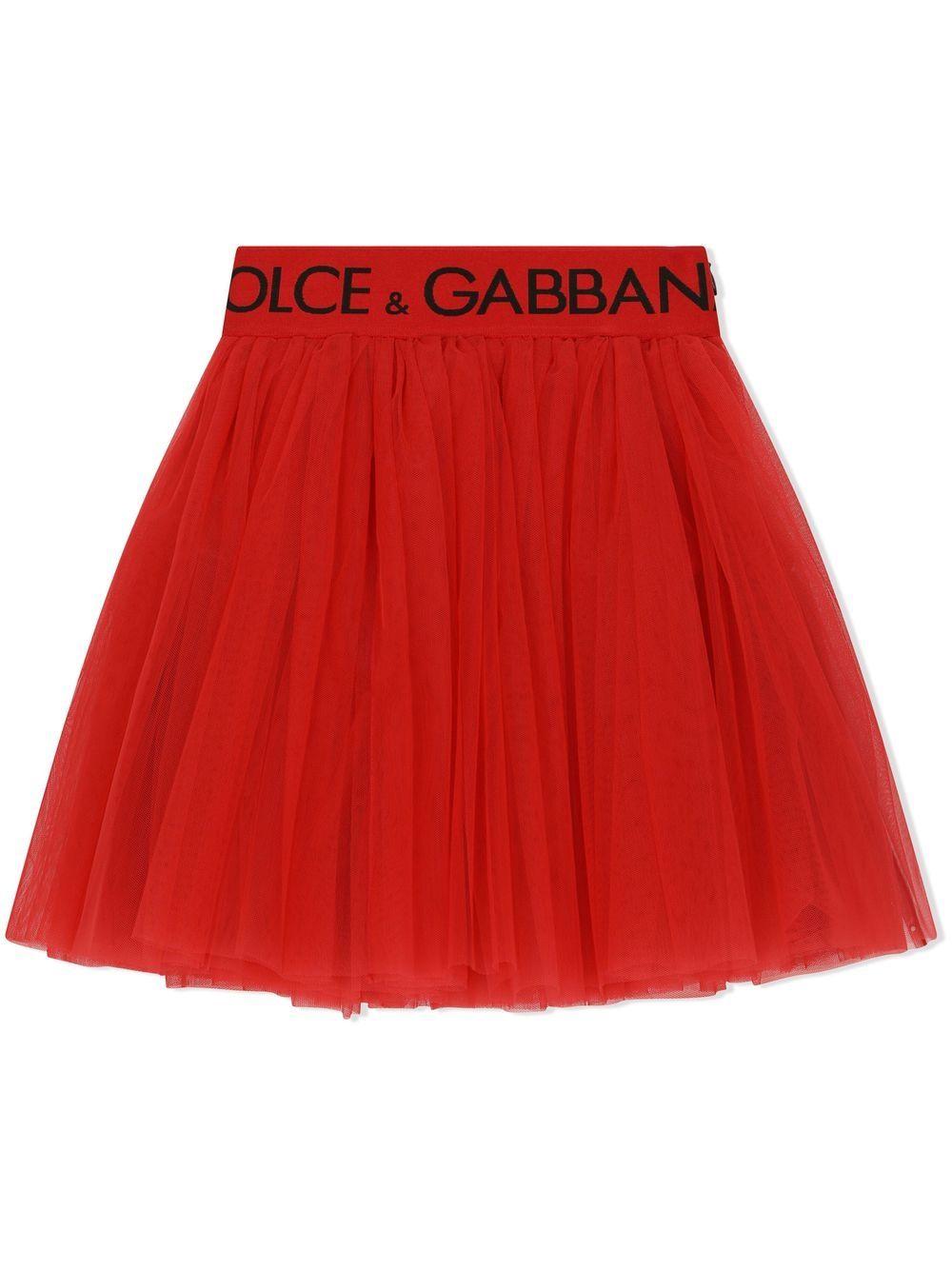 Gonna rossa bambina DOLCE & GABBANA KIDS. Rete in tulle, design a strati, cintura con logo, gonna svasata e orlo dritto.