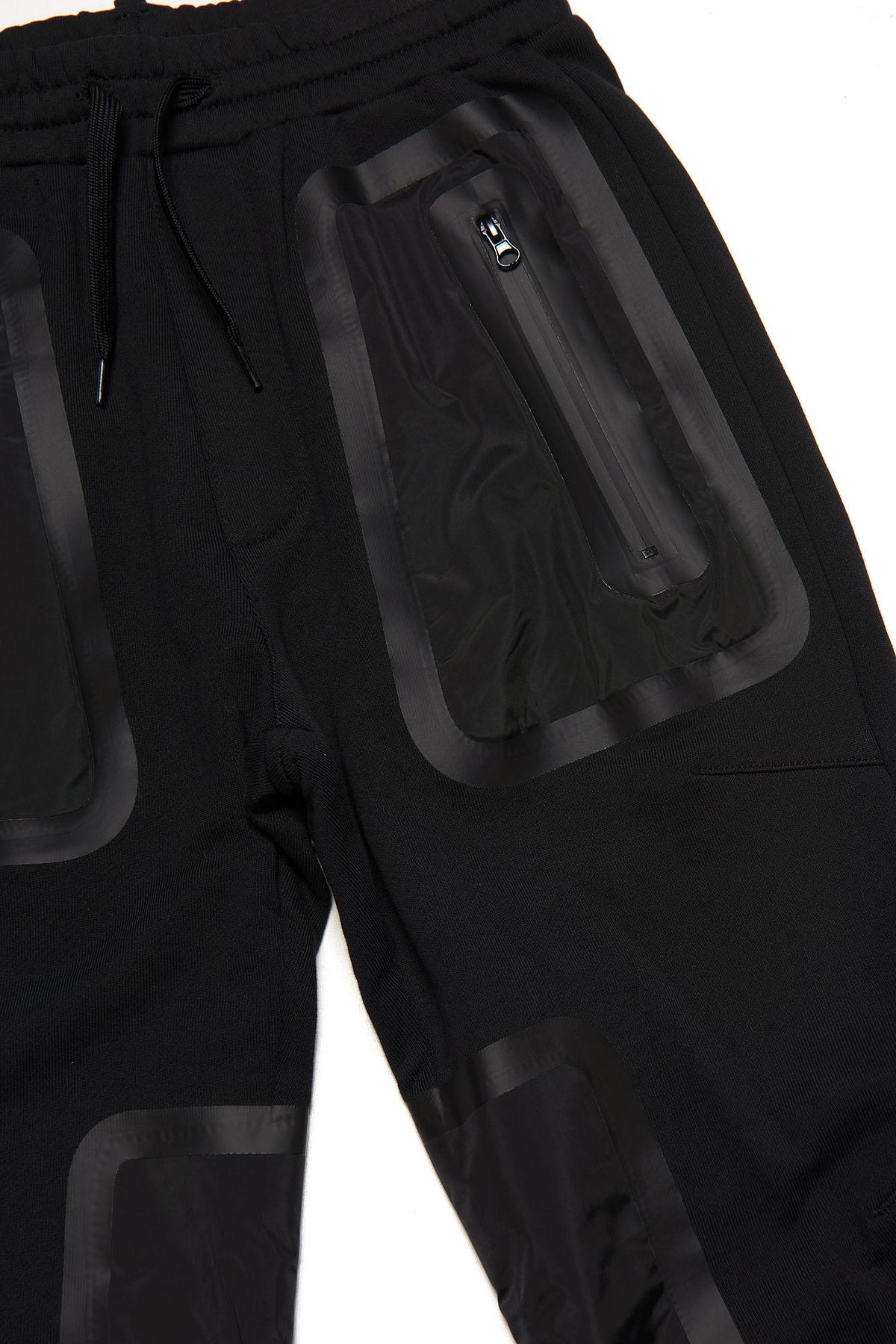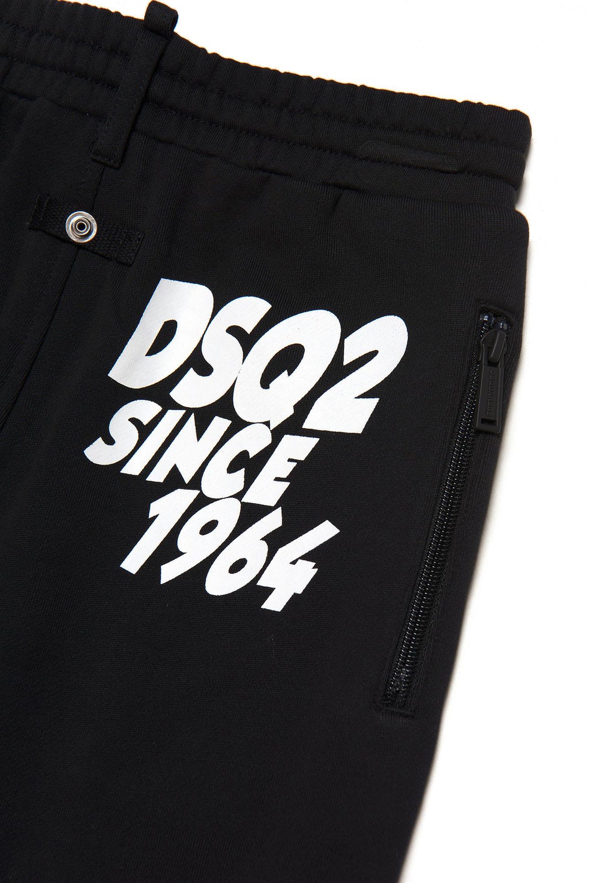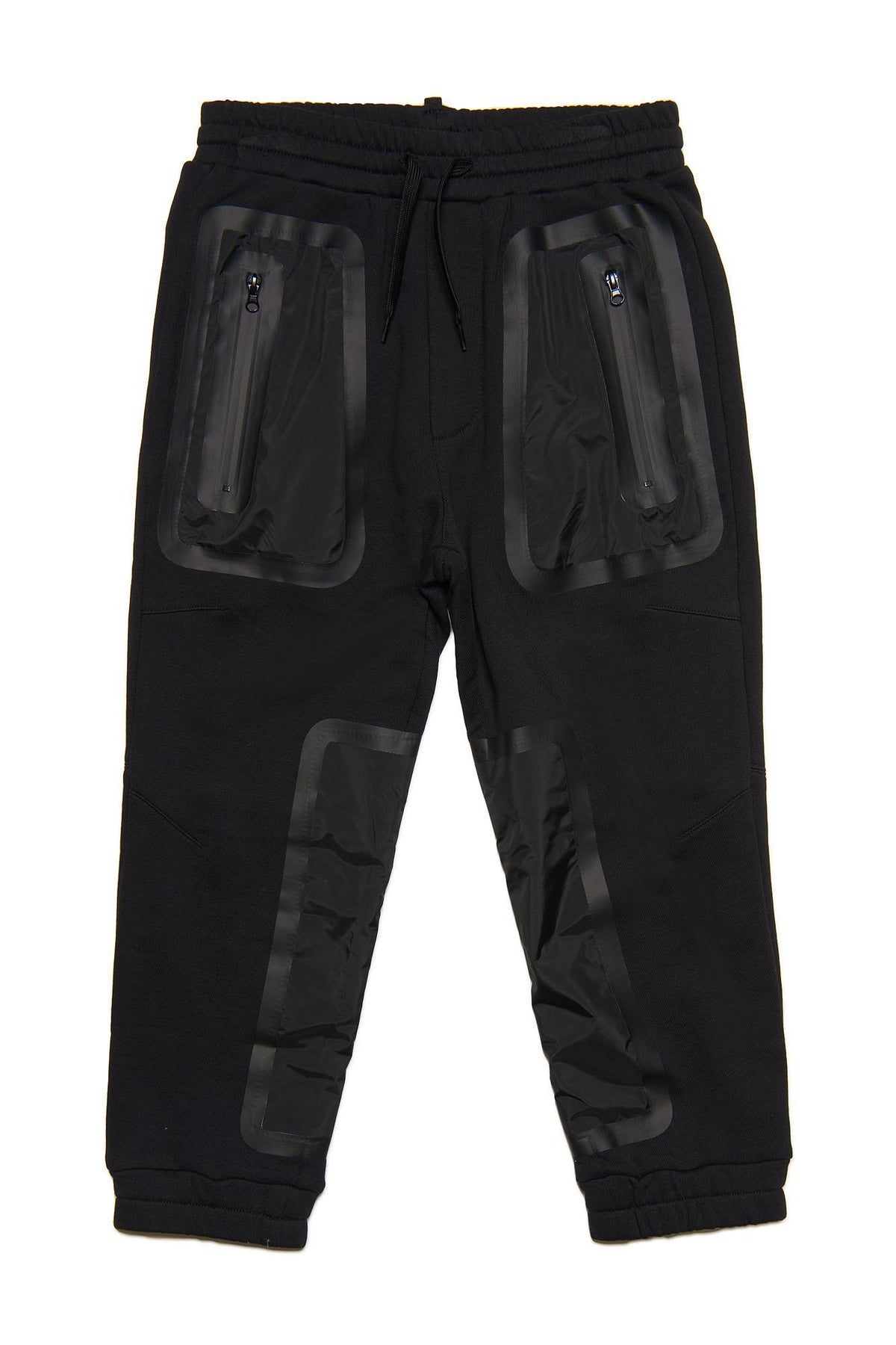 Pantalone nero bambino,Dsquared2 Kids.Nero, applicazione posteriore con logo, passanti, chiusura frontale nascosta, dettaglio plissettato, due tasche a filetto posteriori con bottone e orli alle caviglie elasticizzati.Composizione: lana vergine 95%, elastam 5%