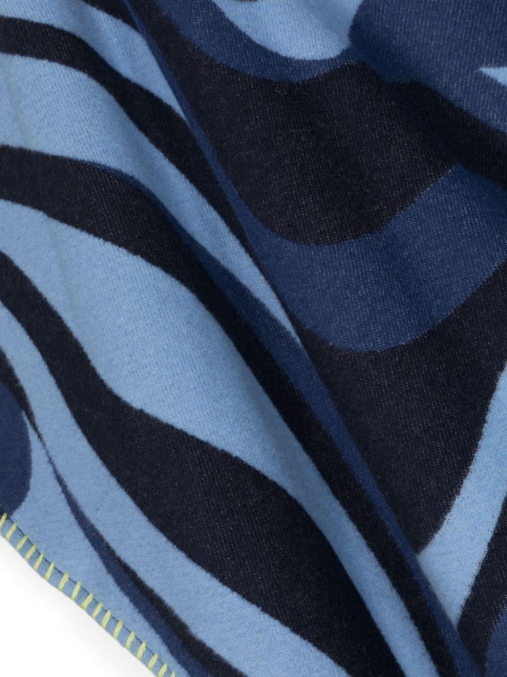 Mantella blu bambina Emilio Pucci junior. Fantasia astratta, orlo con punto festone, design drappeggiato, design a mantella, scollo a barca, maniche lunghe con apertura e orlo dritto. Cotone 75%, Lana 17%, Seta 8%